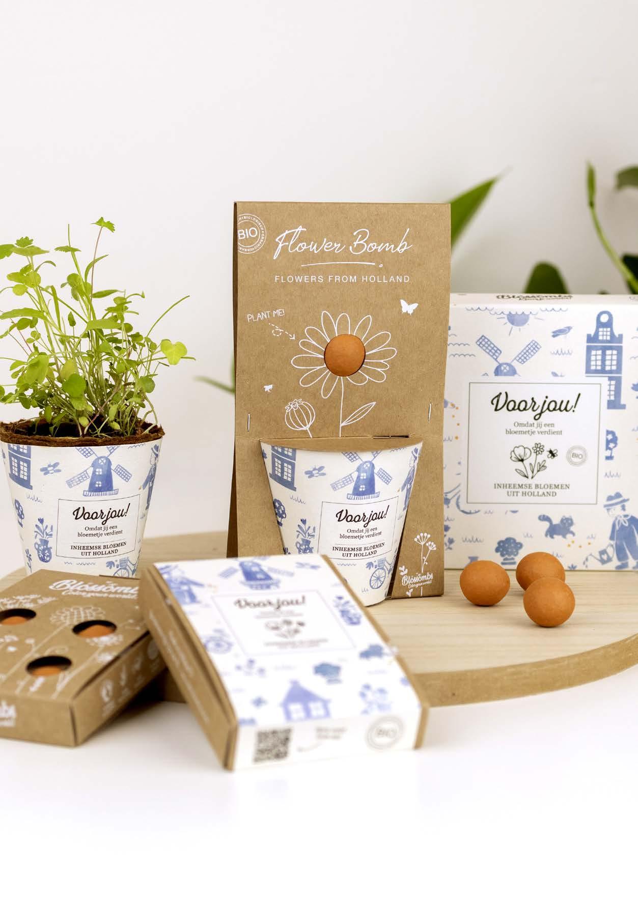 En zo zijn de bloem ‘bommetjes’ van Blossombs ontstaan. Kleurrijk, verpakt als leuke cadeautjes, 100% veilig, geschikt voor zowel volwassenen als kinderen en voor grote doelgroepen op een duurzame manier in eigen land te produceren.