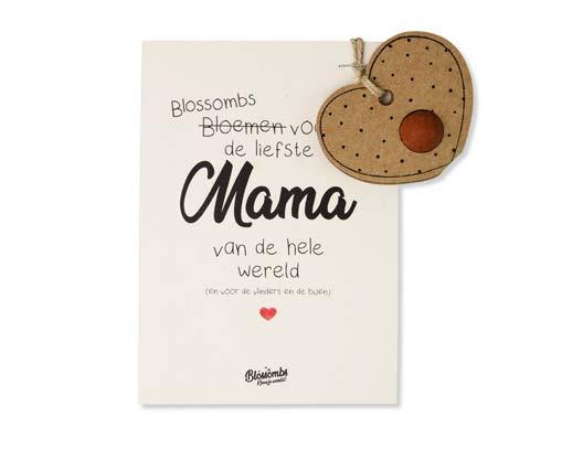 Gewicht: 12,5 gram | Formaat gelukspoppetje: 15x35 mm| Inhoud: 1 medium Blossomb, 1 small Blossomb Formaat kaart: 74x105 mm (A7) of 105x148 mm (A6)