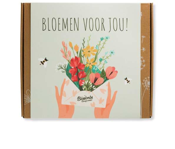 Een luxe geschenkdoos met 9 gekleurde Blossombs, die ook gemakkelijk door de brievenbus past. Je kunt hiermee 2 m2 wilde bloemen creëren.