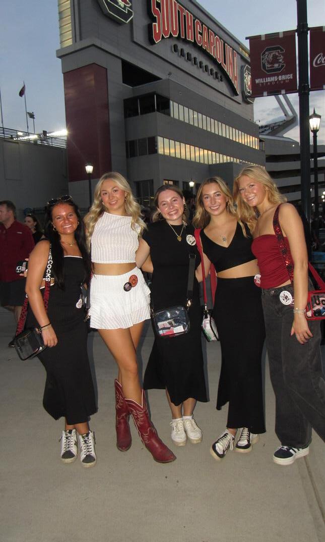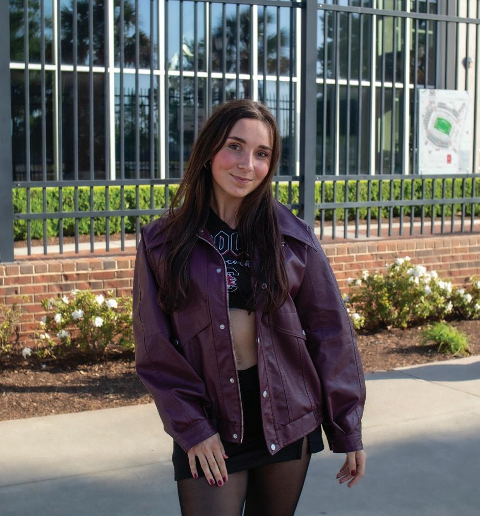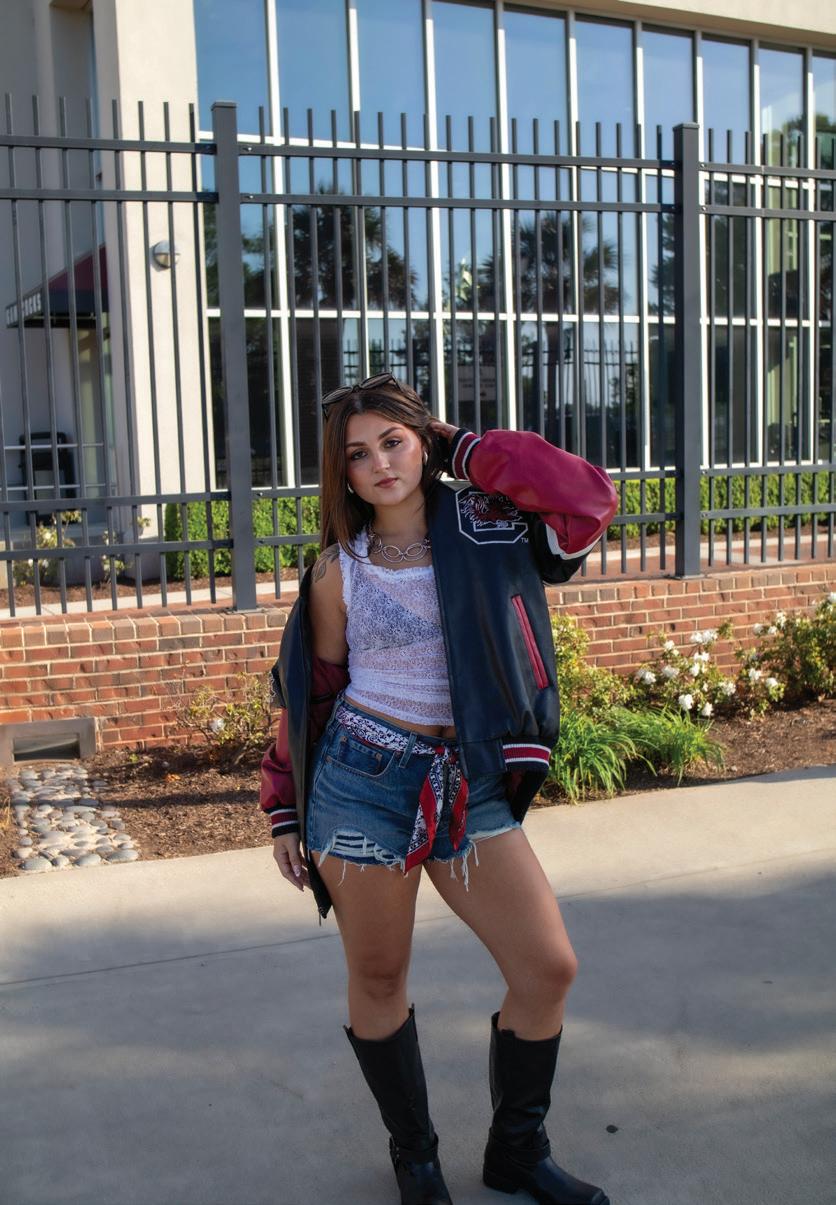 At USC, gameday fashion is a celebration of community pride, individual style, and school enthusiasm that goes beyond what students wear. Gamecocks demonstrate that supporting their team is always done in style, whether they are wearing strategically chosen garnet-andblack ensembles or USC merchandise.