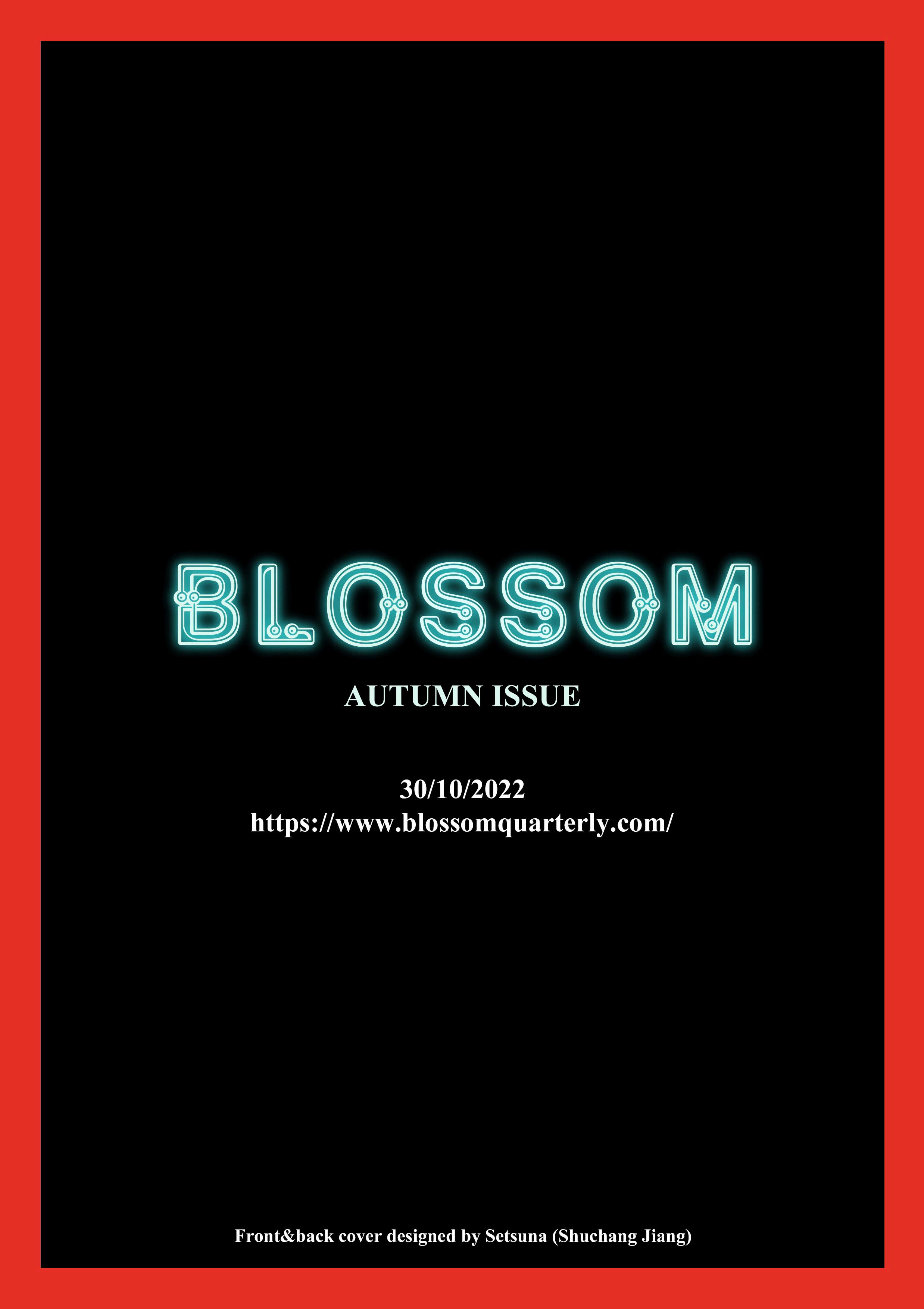 Blossomisasupportivespaceforhighschoolstudentstofreelyexplore andemploytheircreativity,observation,andpassionforrecordingthe world.Wefirmlybelieveintheinfinitepowerofwordsandimages.We hopethatthroughthemagazine,students,ascontributors,canexpress theirenthusiasmforliterature,shareoriginalopinionsonsocietalissues, andusetheirownvoicestoadvocateforchange.Atthesametime,all readersareofferedthepreciousopportunityoflearningaboutevents fromvariousaspects,bothinourprintedversionandfromourwebsite https://www.blossomquarterly.com.