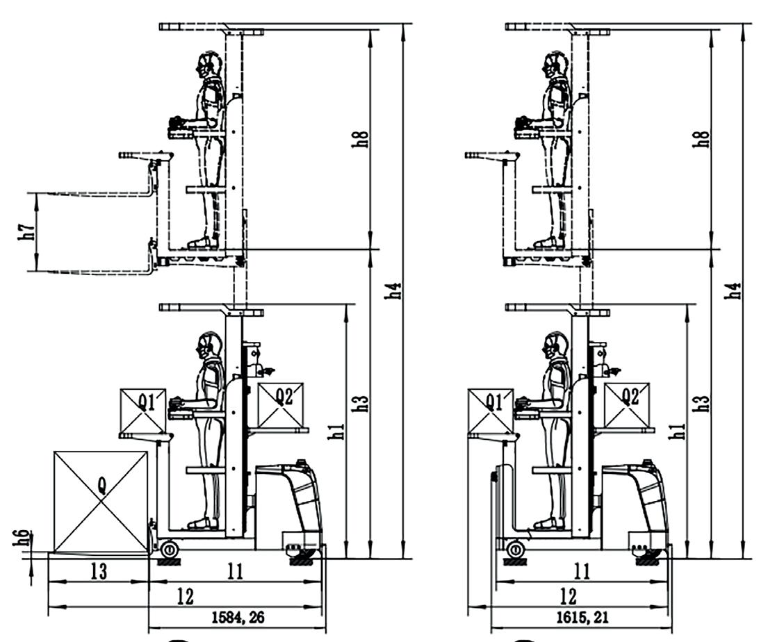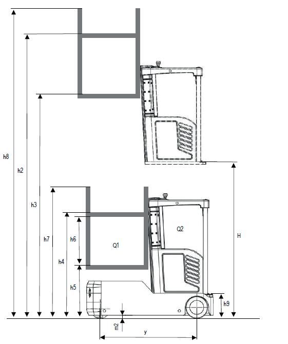 Plockhöjd (Lyfthöjd, plattform + 2 000 mm) h1
