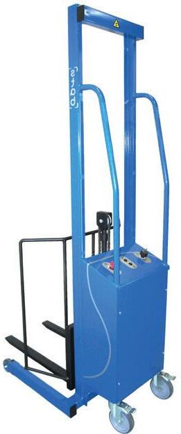 Liten och kompakt handragen staplare med dragstång, kedjestyrning och dragbyglar på stativet. Hydraulventil för precisionsreglering av höj- och sänkhastigheten. Inbyggd batteriladdare. Lyftkapacitet 200 kg och med lyfthöjder från 2 500 mm upp till 5 000.