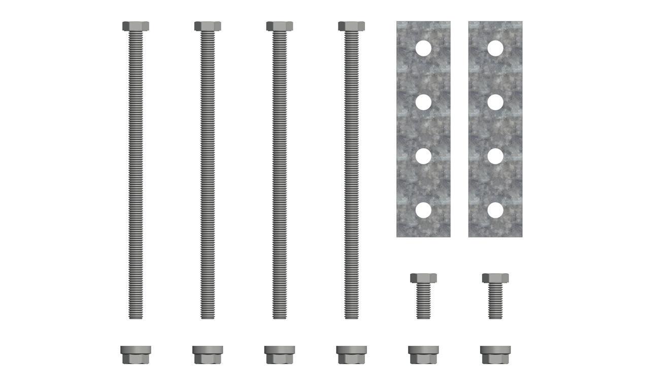 Placera bultarna så nära balken som möjligt på varje sida. Montera fästskena och muttrar på bägge sidor.