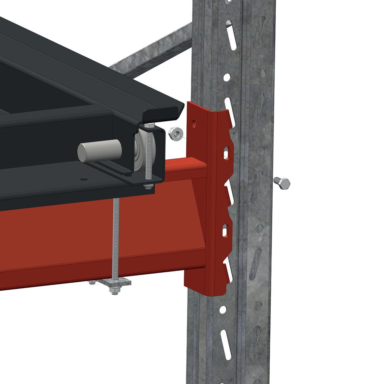 • Rear cross beam must be bolted to the pallet racking uprights (minimum dimension M8)