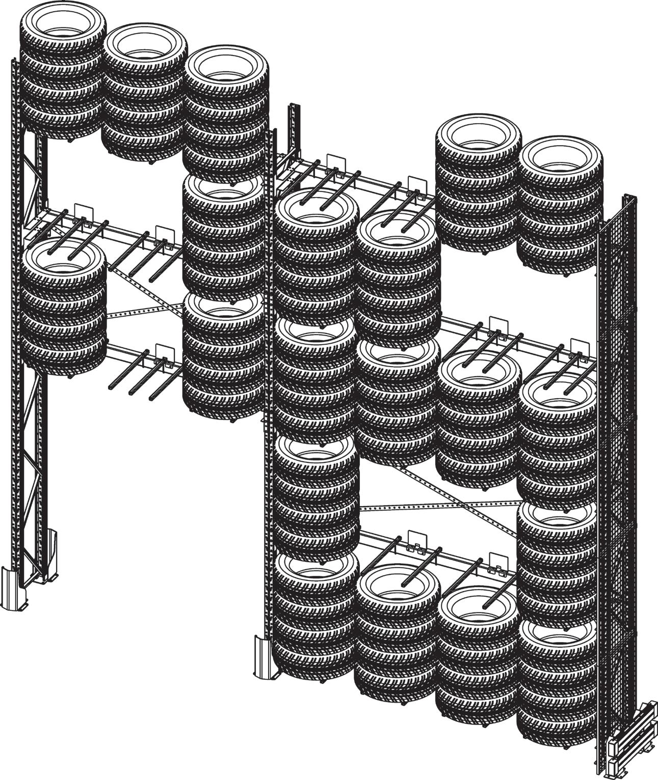 For reoler med truckgang brukes det alltid tre dekkholdere på alle bærejernnivåer. (N)