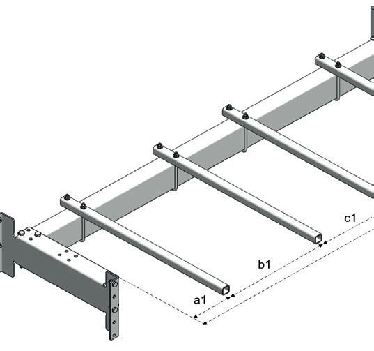3. För däckbalk nivå 4 och högre monteras tre däckhållare för att underlätta säker i- och urlastning. Den tredje hållaren placeras centrerat mellan de två befintliga, enligt måttangivelser ovan