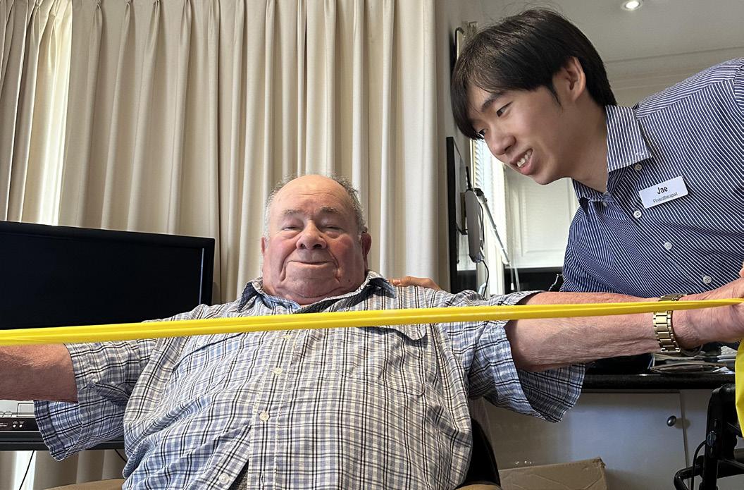Helen and Heinz Wolff benefit from the services of BlueCross Physiotherapist Jae Jo. Helen faces mobility challenges and talks of the importance of having the support in familiar surroundings and not having to get to a specific location. "It also means that my husband can benefit from the service as well, receiving tailored exercises for maintaining his independence," she said.