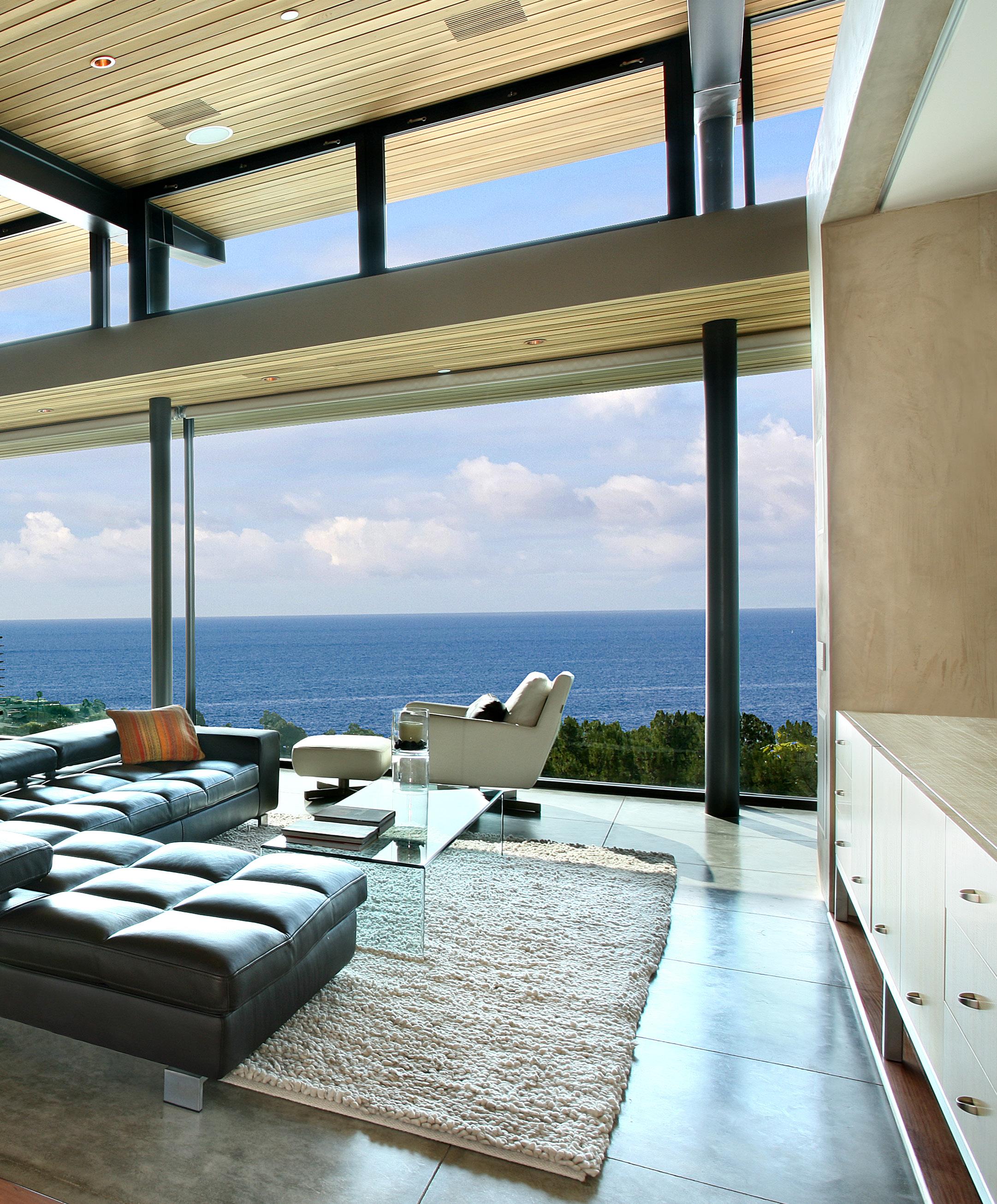 the natural desert foliage, and the ocean 850 feet below. Singer described the home, along with its 1,000-square-foot guest wing, as rustic contemporary. “A home should be a sanctuary,” the ponytailed architect told me back then. “It is important to know when to stop designing and building, so the simplicity is not destroyed. We don’t have much art or decorations here because we’re already living with art. In a well-designed home, where the spaces are architectural, the elements of that home become the art.”