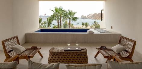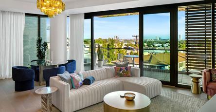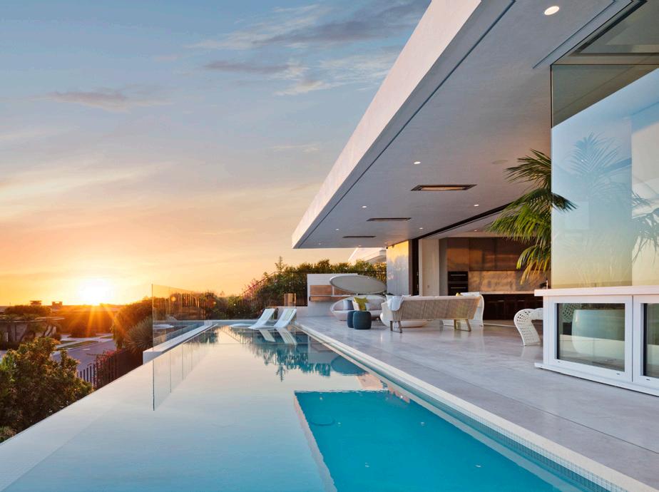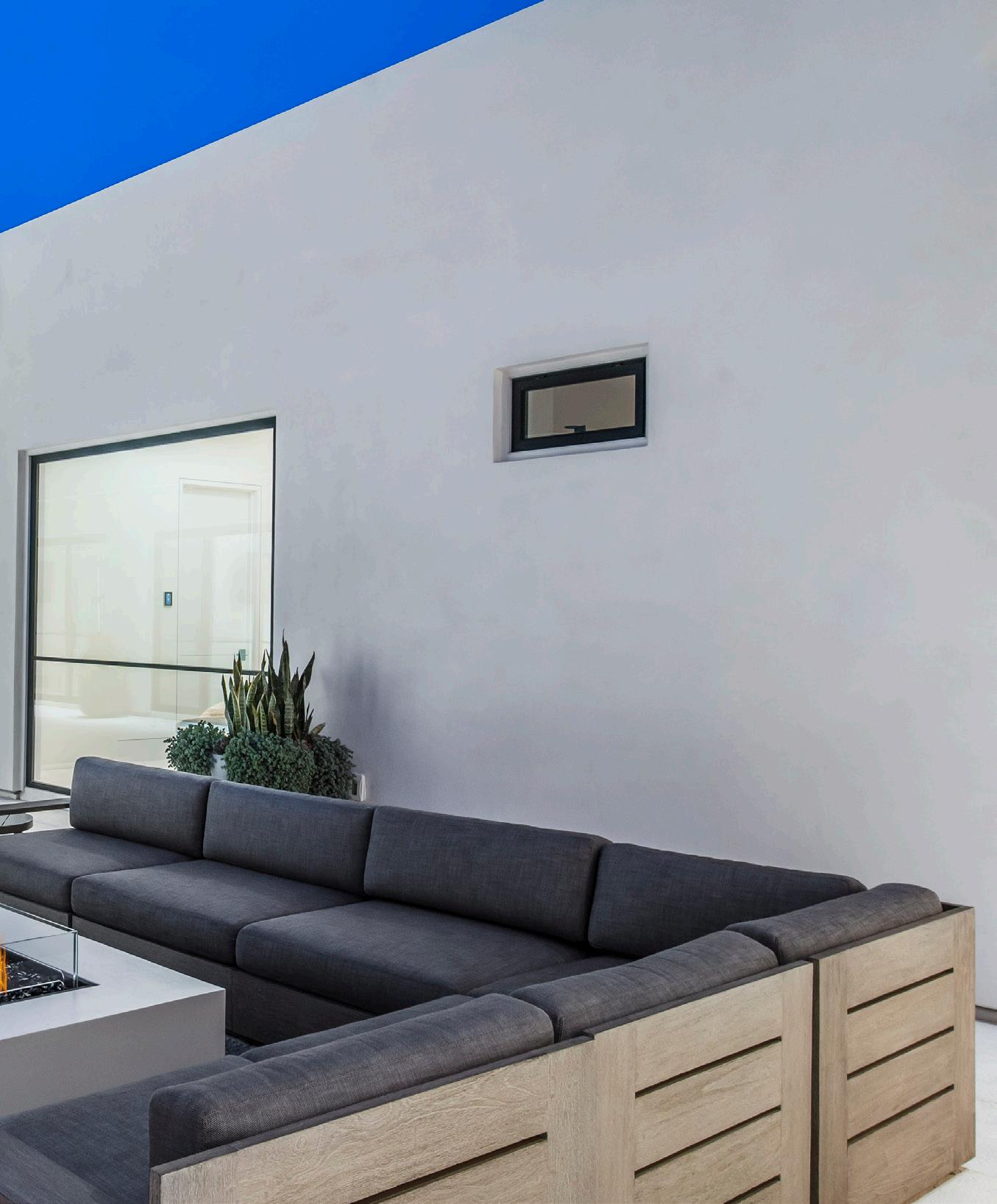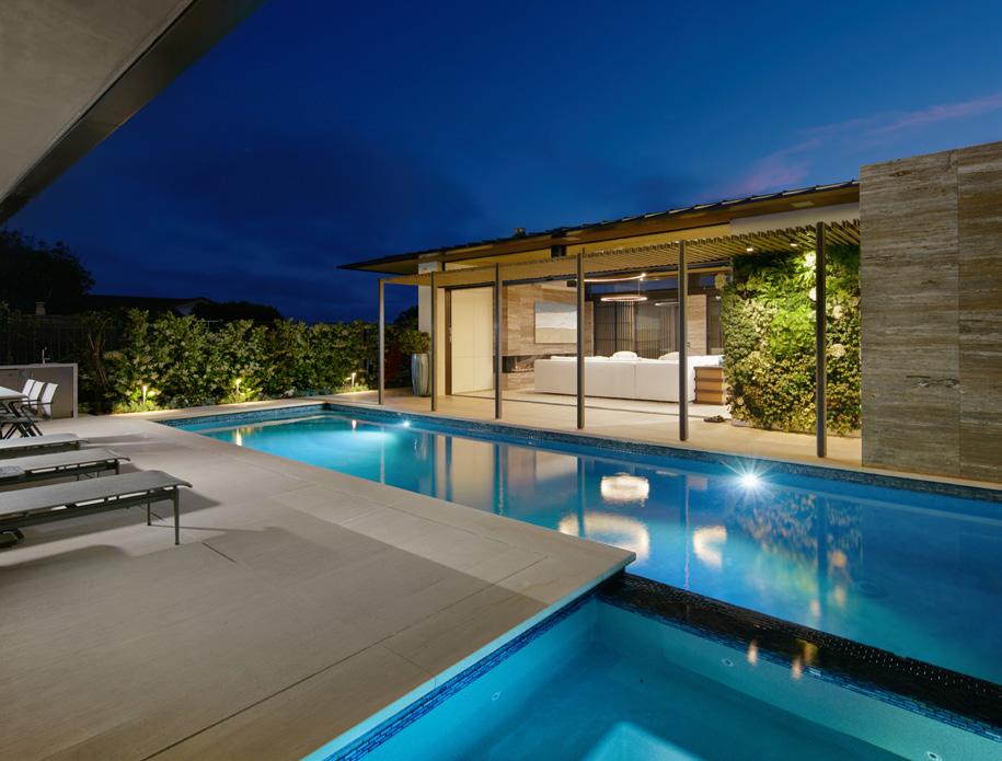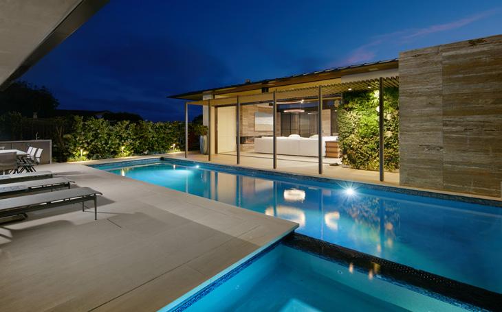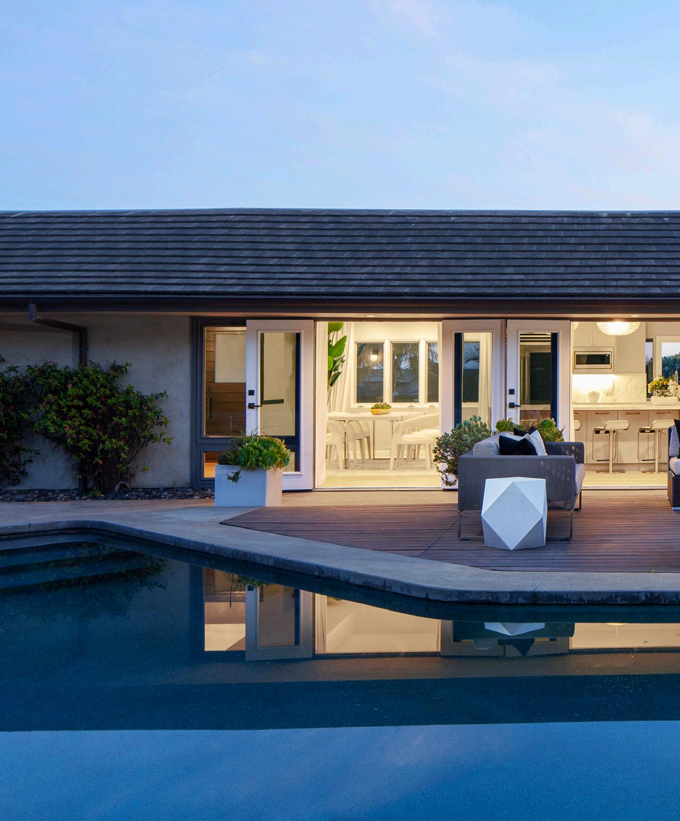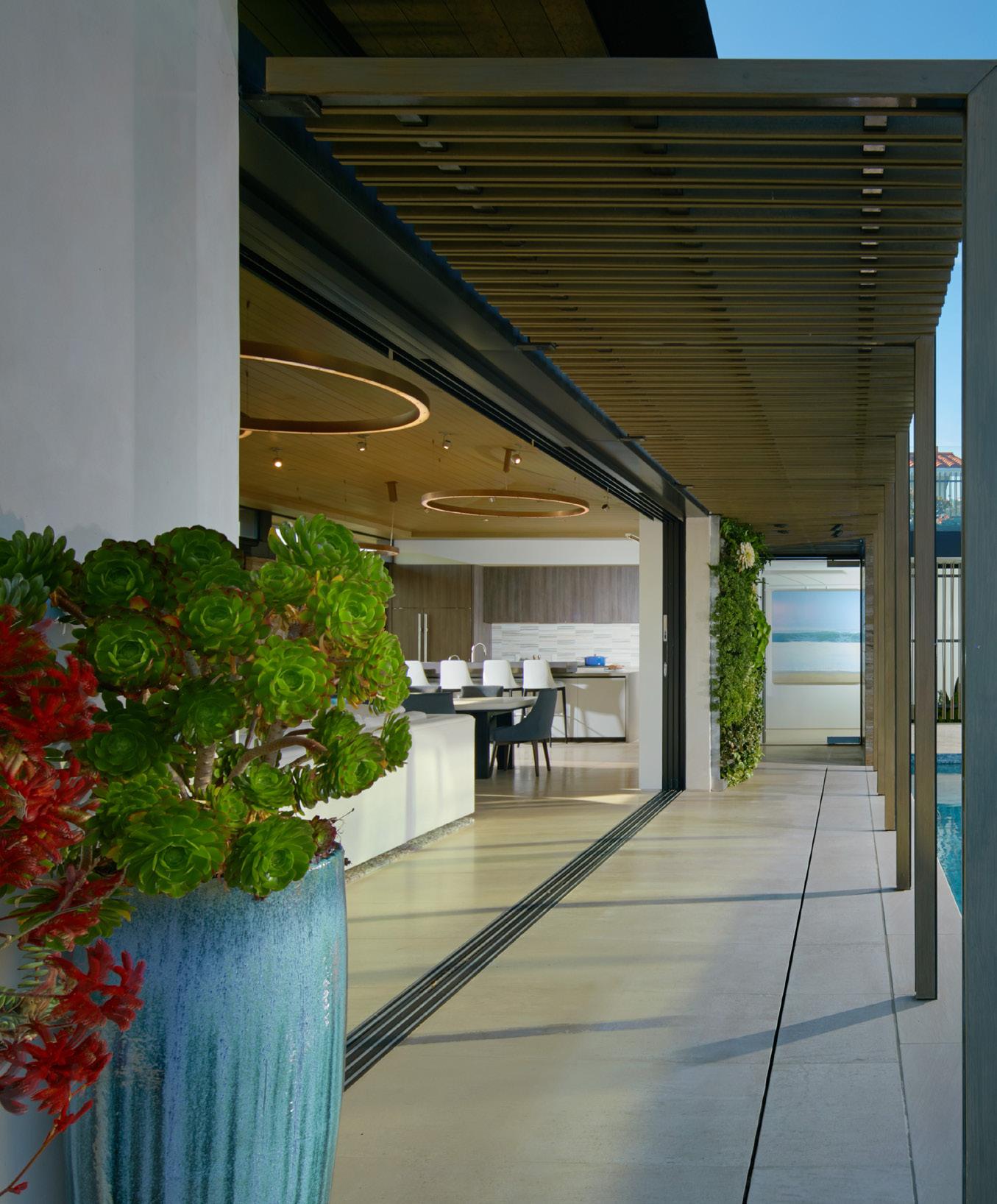 and an additional standalone private home office. Every inch of this home was designed to maximize unbeatable indoor-outdoor flow, with the full-height retractable corner doors in the main living area blurring the line between the property’s interior and the outside.