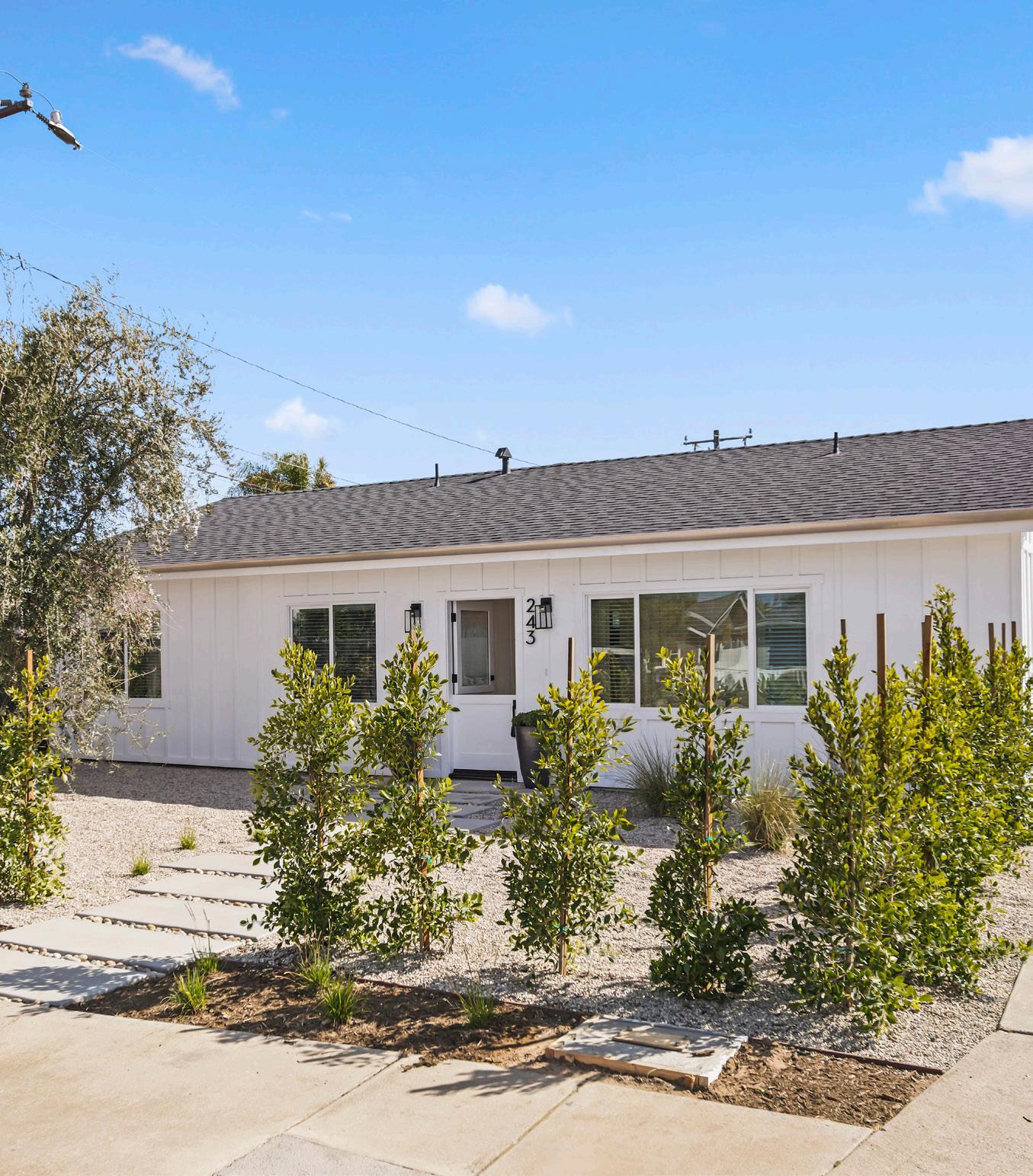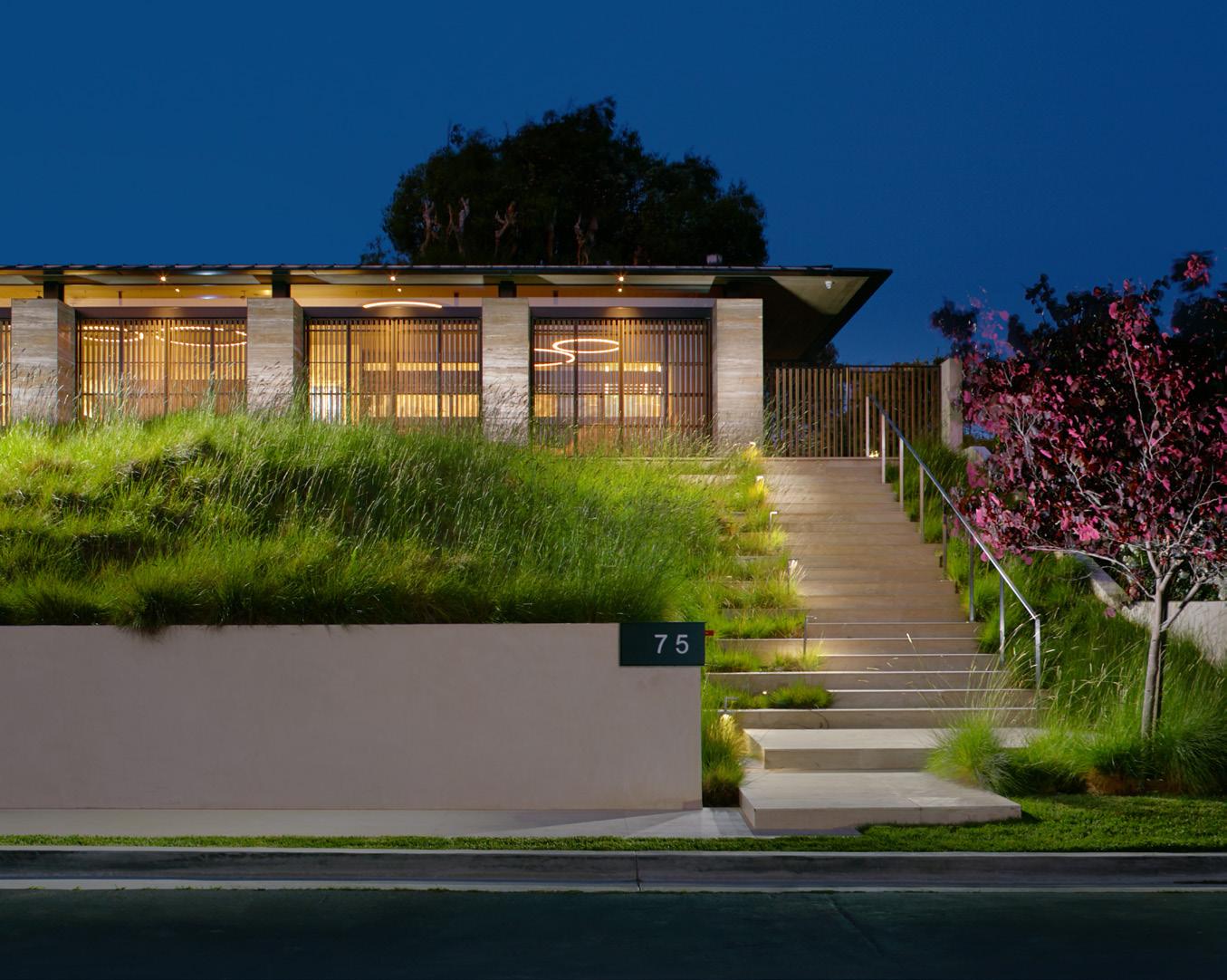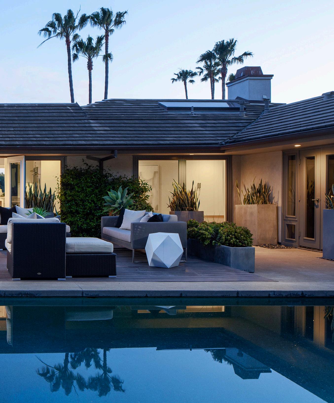 From the street, the house appears as a single-story structure, but reveals a two-story layout toward the back. The upper level is dedicated to the master suite, offering a private sanctuary separate from the rest of the house. The master bedroom opens onto a green roof planted with succulents—an intimate outdoor space to enjoy Orange County’s signature sunsets.