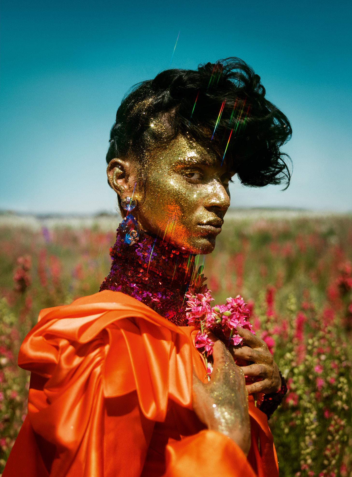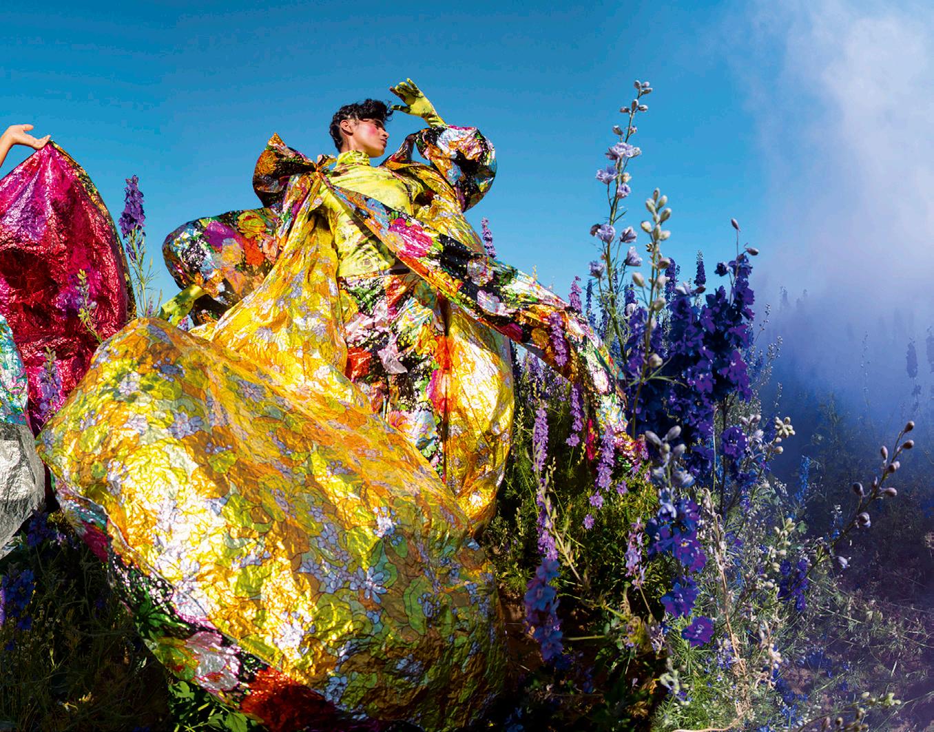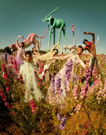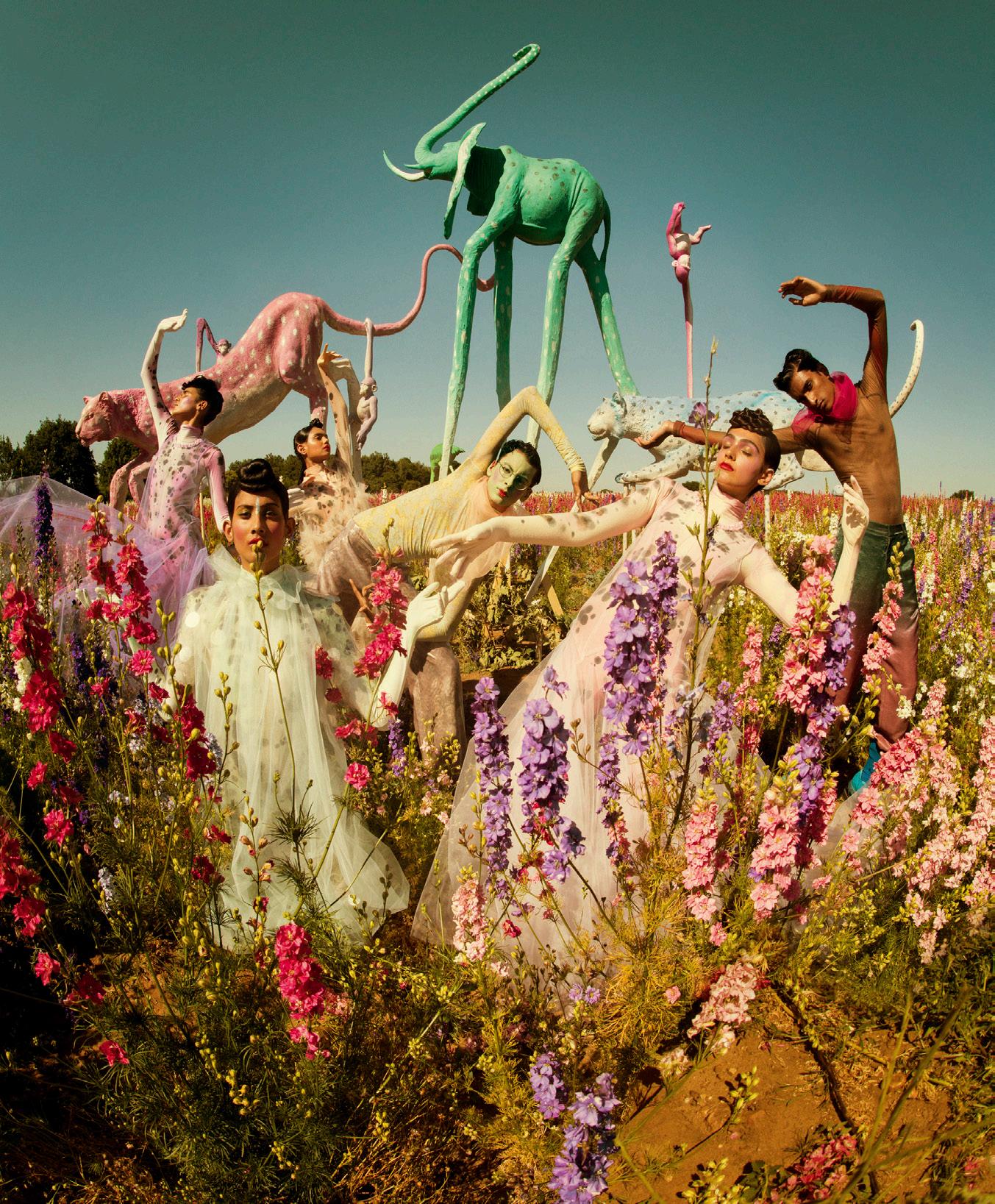 “These photographs are a celebration of the country’s vibrancy and mysticism and its rich history of storytelling. Luckily, England was experiencing a heat wave when we made the pictures, and the Worcestershire delphinium fields were illuminated in an intense light reminiscent of India.” —Tim Walker