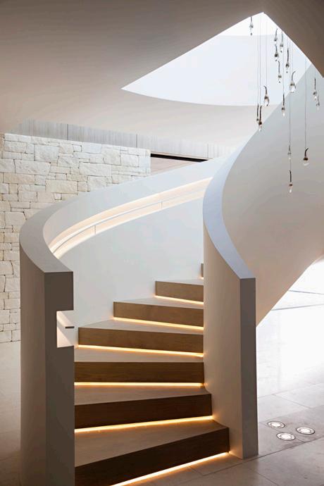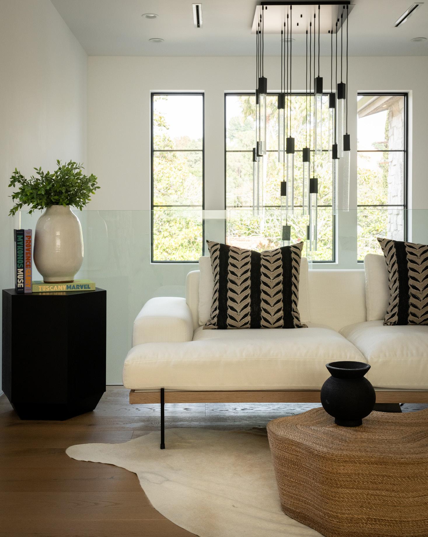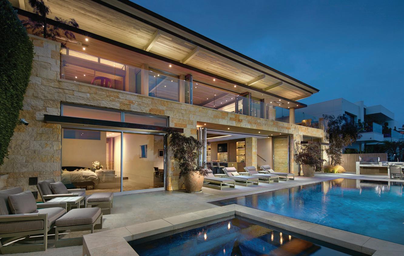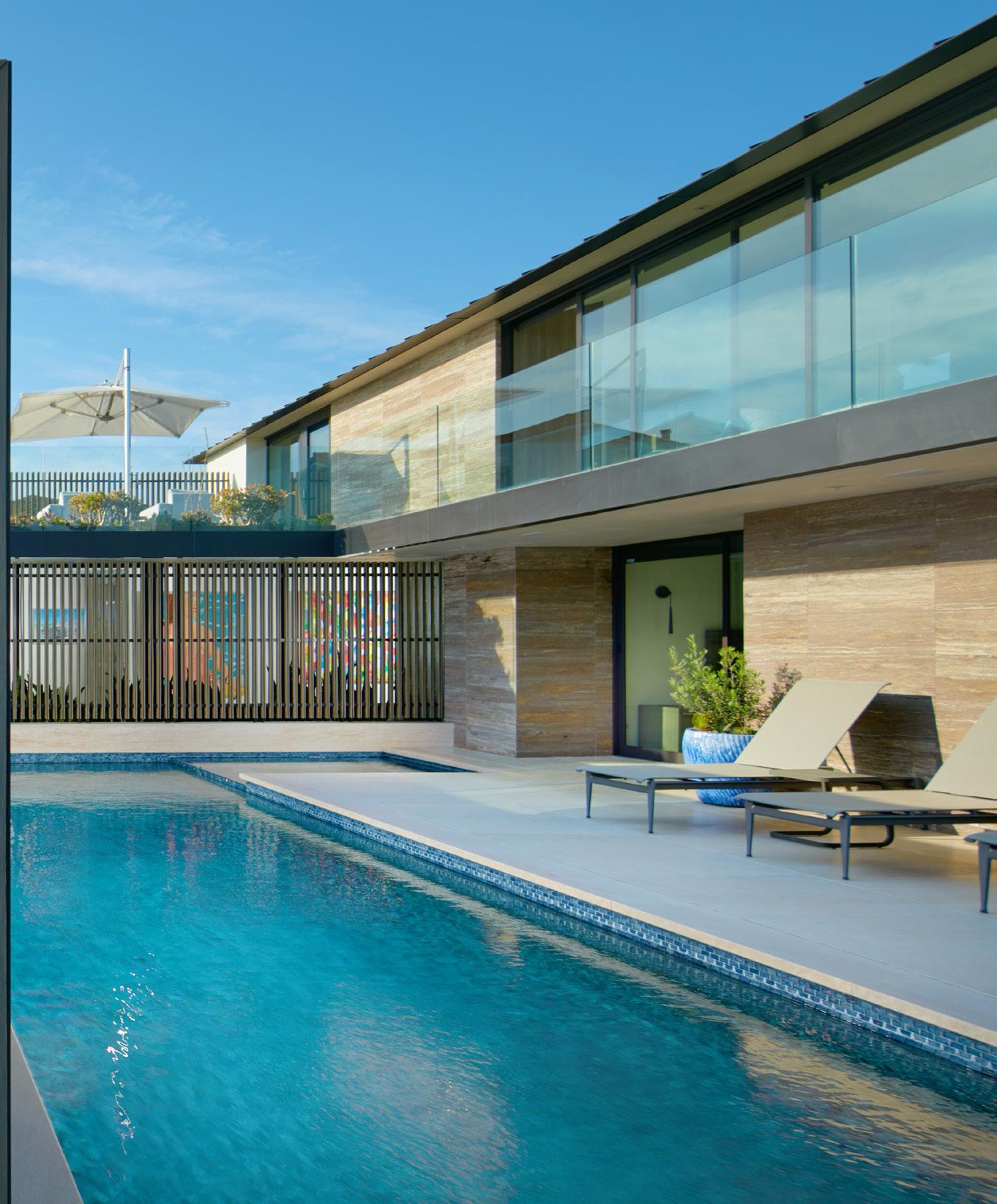 Noppenberger says original sketches for the house faced opposition in Three Arch Bay. “We finally arrived at a design that was still very modern and contemporary, but we definitely had to dial it back a bit,” he says. The result is a house with a visual lightness created by a generous use of glass and dramatic cantilevers. That lightness is contrasted with stone walls that create an earthbound permanence, rooting the house into the site.
