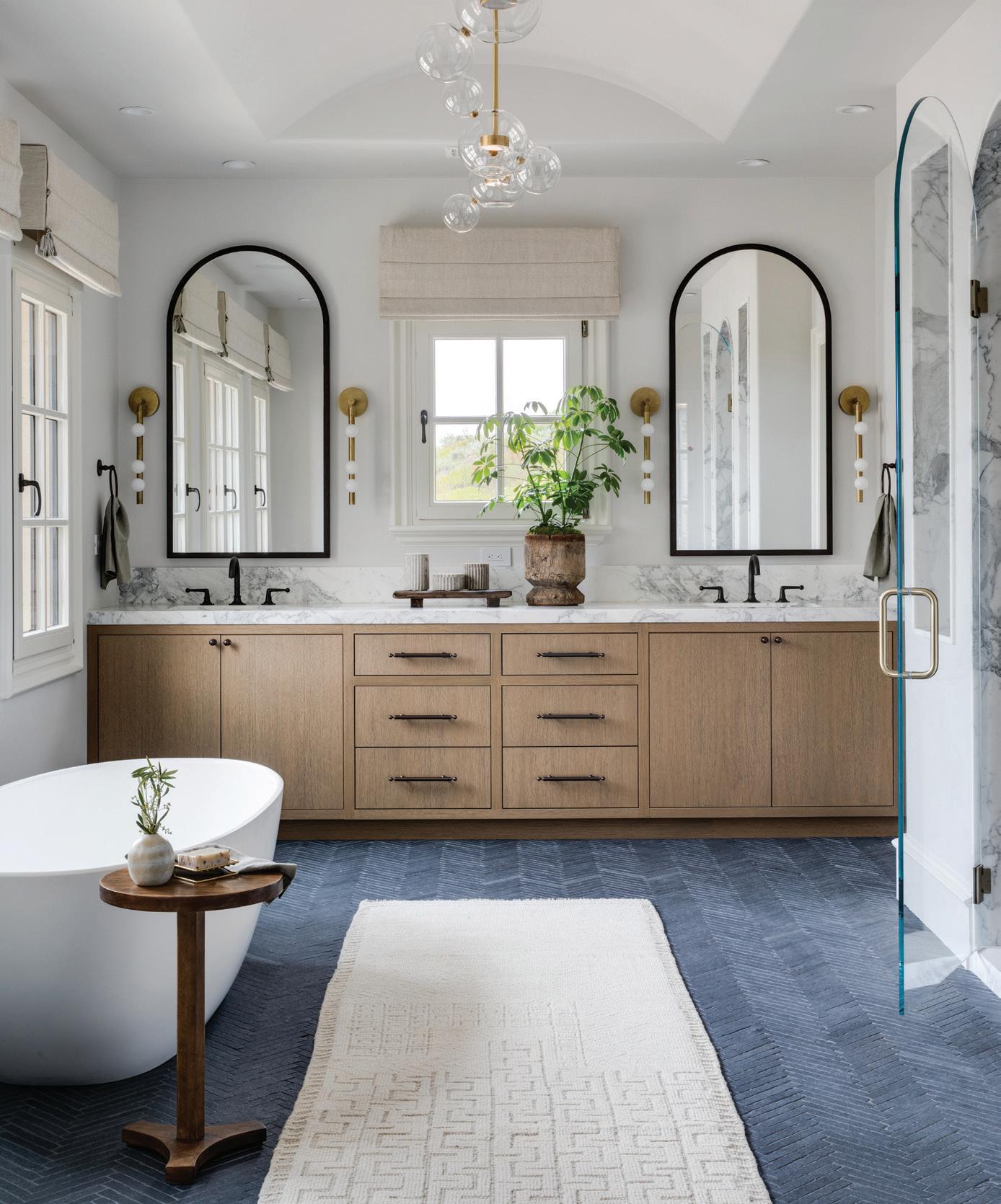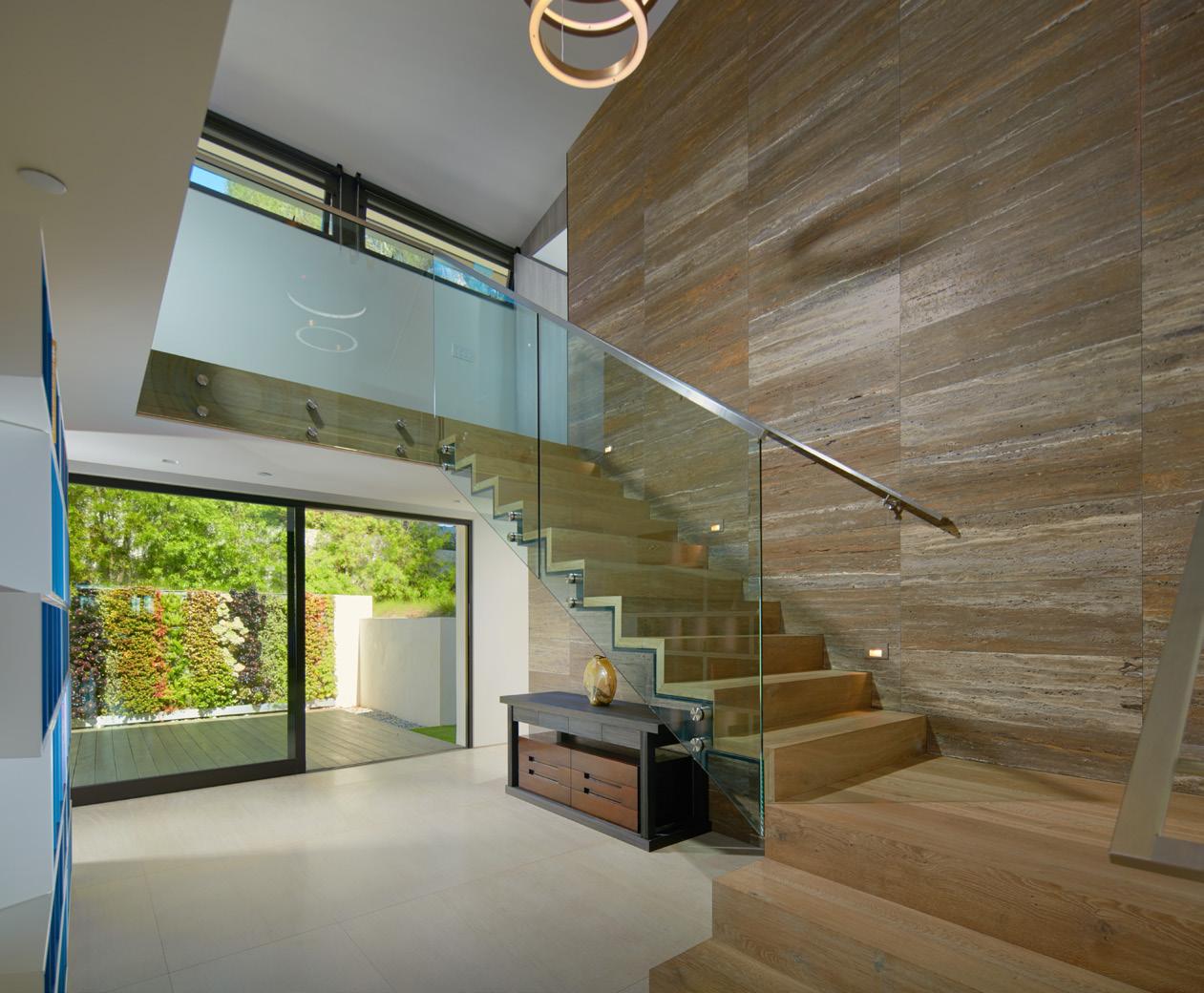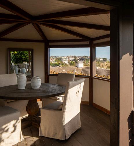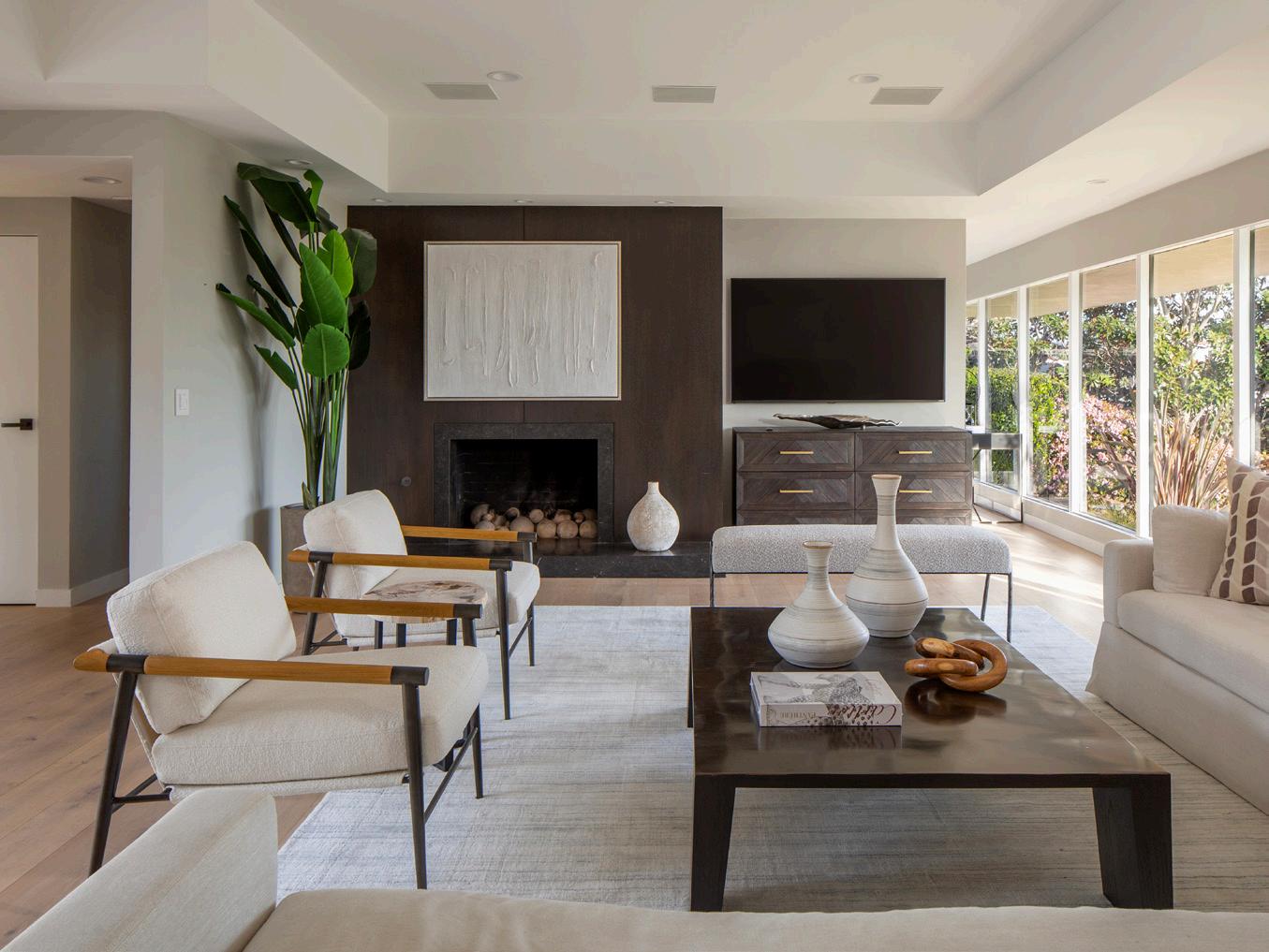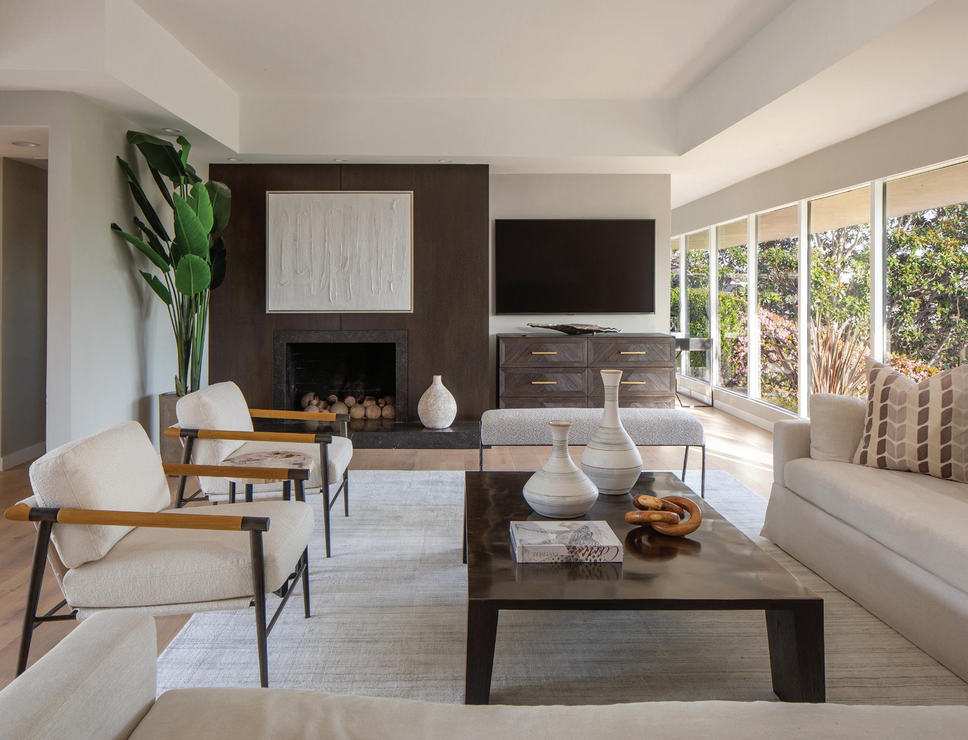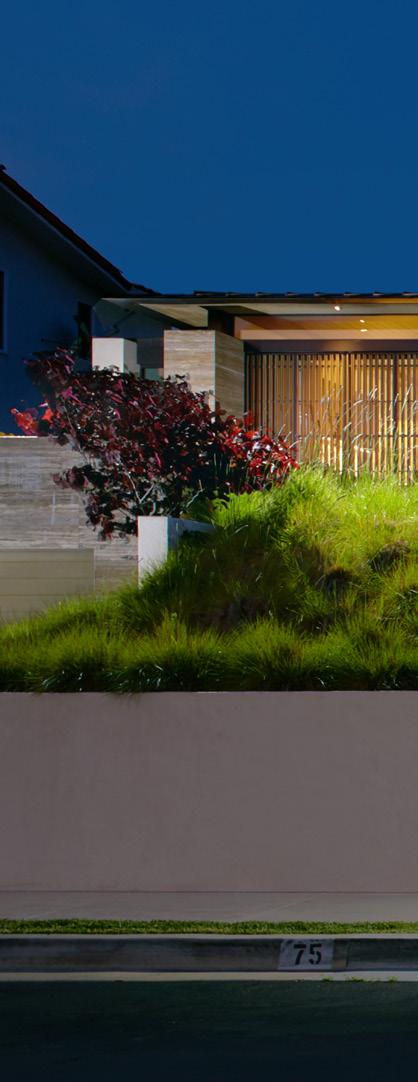 With a respectful nod to the neighborhood’s traditional charm, Noppenberger’s carefully crafted design honors the existing architectural character of Three Arch Bay and thoughtfully introduces modern elements. By incorporating traditional materials such as stone walls and a limestone staircase that climbs from the street to the elevated site, the house merges with the landscape. Dark