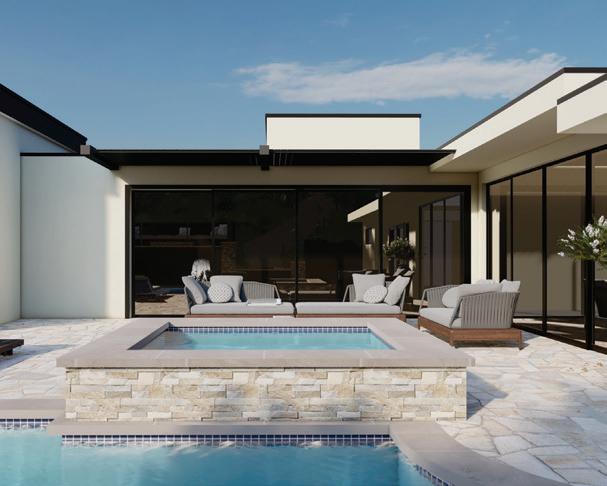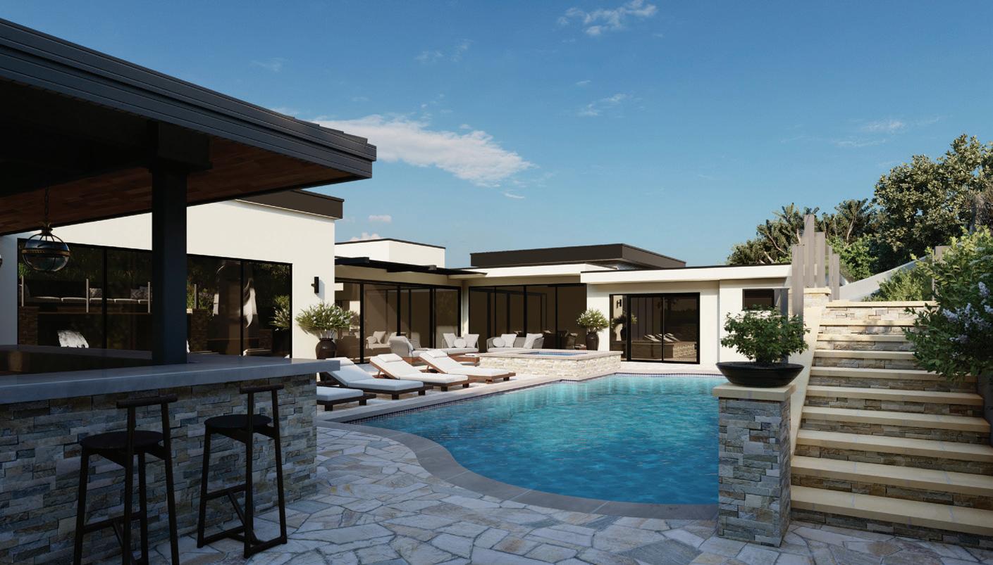 choices such as the Montblanc flooring throughout create a truly serene feeling. “The outdoor space of this home is truly incredible,” says Stanaland. “With a lot measuring over a third of an acre, this home is great for entertaining.”
