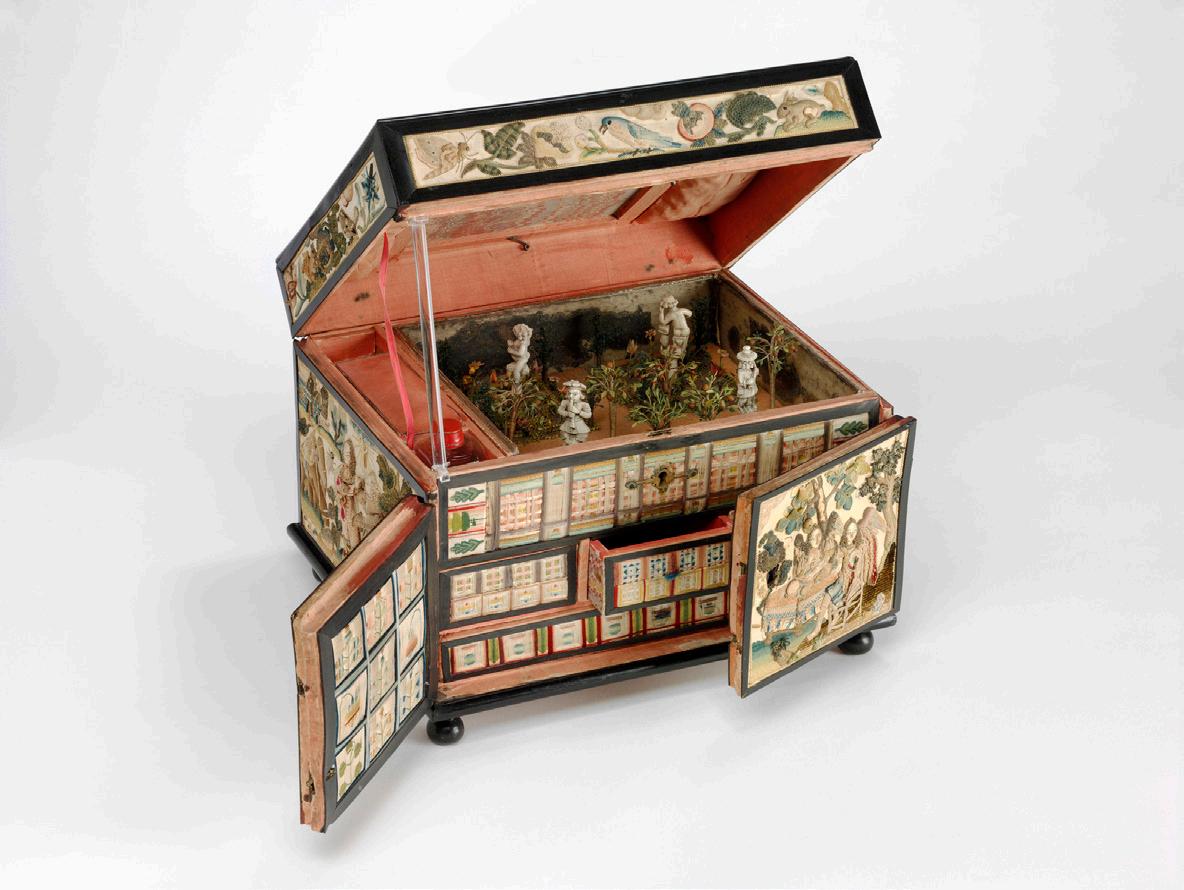 “We all have a need to store our secrets in a private place that we love. A diary, a scrapbook, or even a phone. The golden key and embroidered casket from the V&A collection feel like an expression of that need to escape. The casket contains a spectacular secret garden. It’s an object of fantasy and transformation, suggesting a world in which you can safely be whomever you want to be, like the London club scene where freedom of expression reigns supreme.