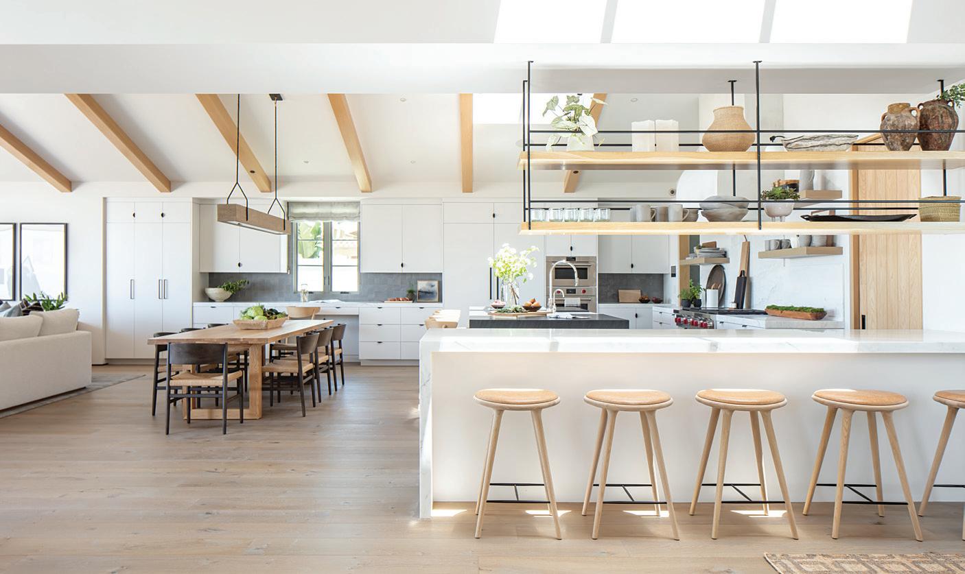 Recognizing the importance of the kitchen as a social hub for a family that loves to cook together, Noppenberger ensured an open and seamless integration between the kitchen and adjacent dining and family areas. “It’s nice to imagine the kitchen as a stage where the owners can entertain, whether they’re together as a family or with friends,” he says. The open design makes it easy to engage everywhere in this communal heart of the home.