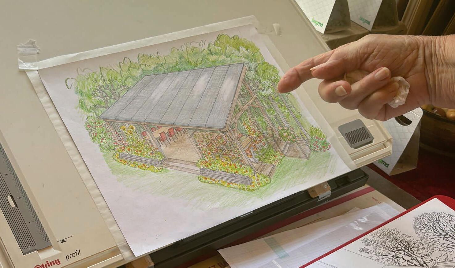 Anna sketches her ideas on paper.