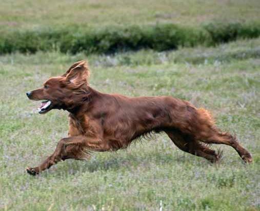 Colin Forde’s Irish setter FTCh Bownard Delegator stretching out