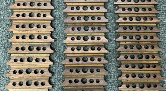 Using native woods, running a solarpowered facility, and sourcing and selling American-made banjo parts align with Patrick’s commitment to sustainability. He still plays the banjo every day, but with two businesses to run and a family with two children, he stays fairly close to home these days. He did make it to IBMA World of Bluegrass in Raleigh but left early due to Hurricane Helene. “I brought supplies home with me, and I barely made it back,” he recalls. “Helene affected everybody in this area. We shut down for a while. We had no power for a couple of weeks, but our employees were without water for over two months. It took us a good three months to get back to normal production.”