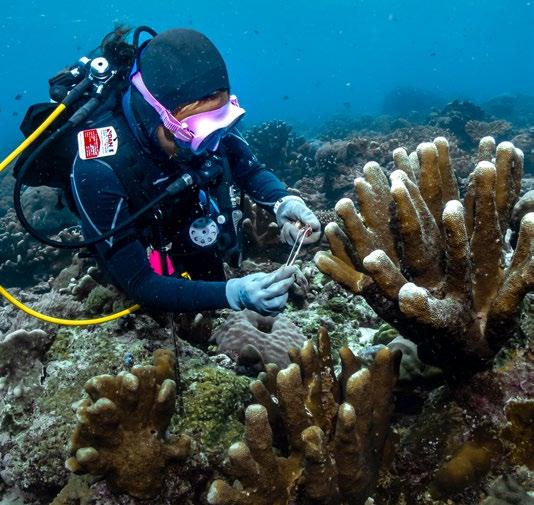 The activities vary from general coral gardening maintenance, fragmenting and planting new corals, transplanting, and carrying out drupella snail hunts. Drupella snails need hunting in Indonesia to control the population, as they remove the mucus that covers corals, exposing the corals to harmful microbes and coral diseases.