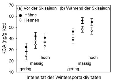 Konzentrationen von Stresshormon-Abbauprodukten im Kot von Auerhühnern im Schwarzwald vor und während der Skisaison in Abhängigkeit der Intensität der Wintersportart