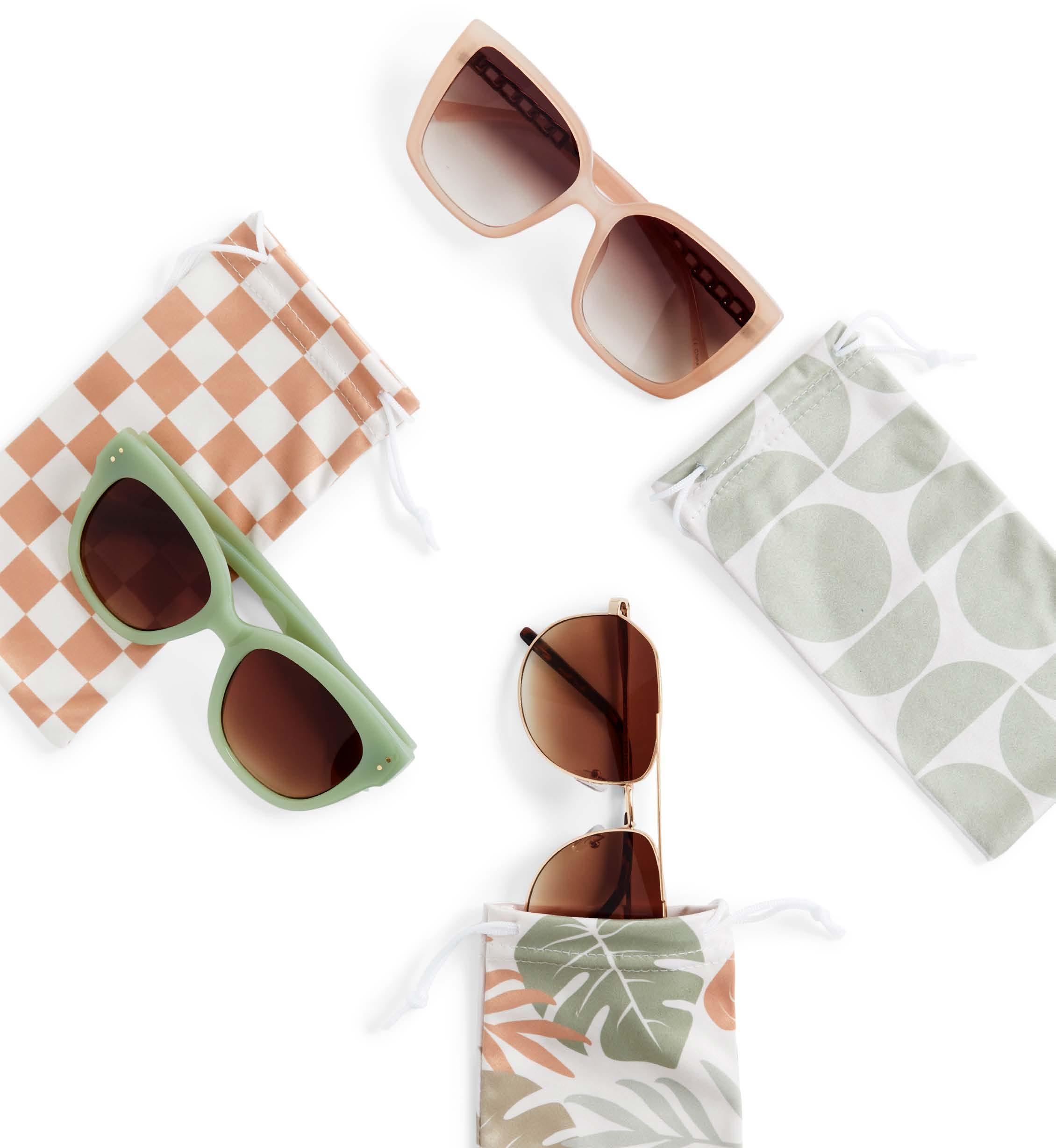 DRAWSTRING SUNGLASS CASES WITH UNIQUE DESIGNS AND HIGH QUALITY SUNGLASS CORDS TO PROTECT AND ACCESSORIZE