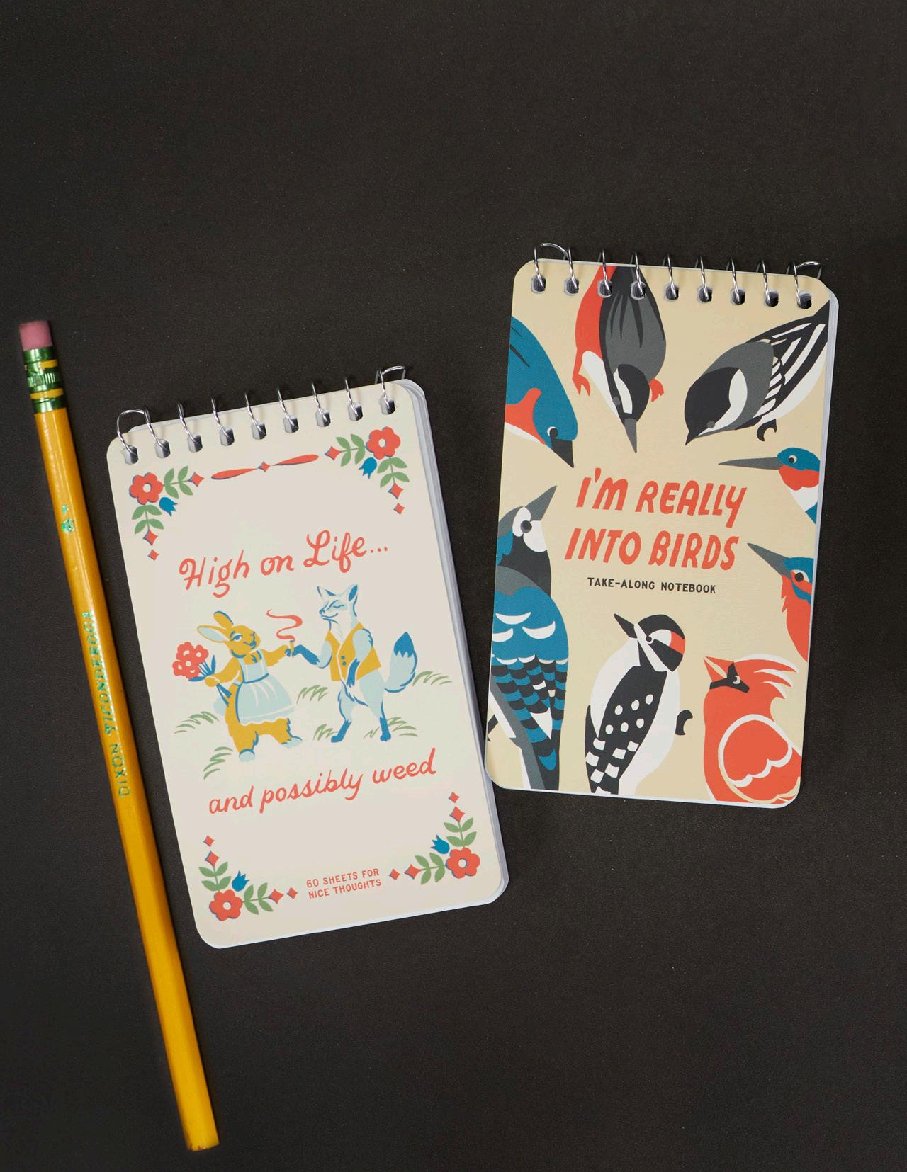 Our pocket-sized, spiral bound notebooks are a hit! These 60 blank pages can take anything you throw at ’em — words, doodles, recipes or treasure maps.