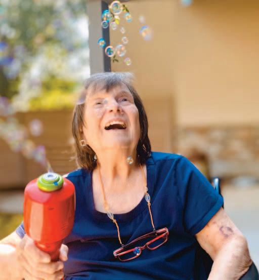 Residents at The Mission enjoy bubble therapy, a gentle sensory activity that engages the senses, reduces stress, and makes for carefree fun.