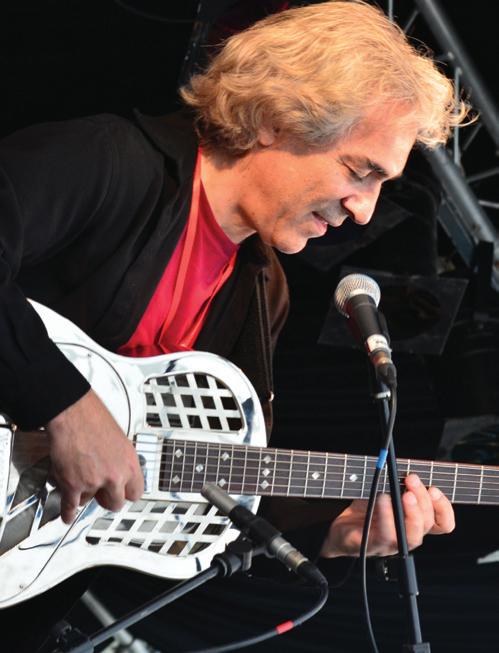 Larry Miller Band. Having taken last year’s Sunday afternoon audience and organisers by stormforce rocking blues, Larry was invited back to perform again but programmed late evening. Larry and the LMB devotees were in for a thunderous good rocking time, though they can also take it down a level or two and surprise you with a slow burner of a blues song. Larry’s ascent to top festivals here and abroad was not a meteoric rise, but a steady, hard, sure-footed climb. I can recall seeing him in the Reckless Engineer (Bristol) some fifteen years ago. The pub was packed and many a Bristol musician showed up that night as, like me, they had heard talk of this guitar slinger making a name for himself on the biker scene and a few pubs and clubs around the M4 corridor. Well he’s served his apprenticeship and has emerged a flying-withhonours veteran, fully decorated (and dressed to kill, no prisoners taken) rocking blues hero. The likes of Hendrix, Gallagher, Moore feature in loud long salvos from Larry’s brilliant guitar work, but his own material can level you equally