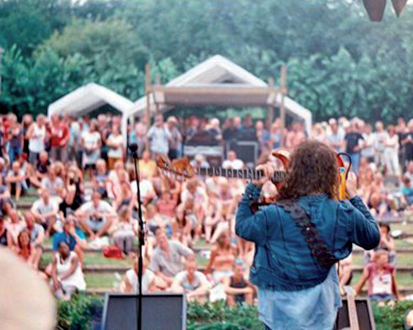 The Greyfriar’s lawns were now covered with folks and families and several dancers were up. Steve won over a good few more fans by the end of his joyful set including a group of young girls (all under 10yrs) who danced away to his great rolling guitar style. They also sat alongside him on the stage that was not very high and gave him High Fives following the slower more soulful songs!! One of these fans who saw me writing away told me that he was very very good but did say a naughty word here and there, but he did say sorry after! She also signed my note book, so Ellie Jones gets a mention in Blues Matters!