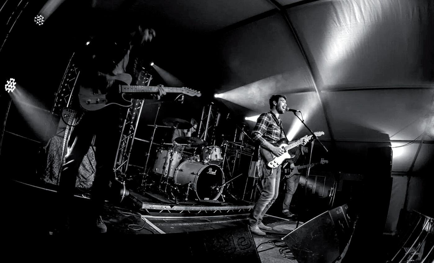 guitarist Jeff Massey leading the way gelling band with bass player Tod Bowers and rhythm Joe Winters.