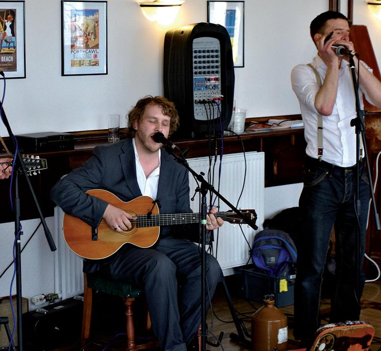 I was lucky enough to witness the first act to play in the Café Bar at The Porthcawl Jazz Festival as they opened the bar to music for this event. The audience were in for an entertaining, foot tapping and educationally humorous treat. I chatted to the band members Jonathan, Liam and Jonathan who have been together for just over eighteen months now and play 1920’s style Blues/Jazz. Instrumentation is harmonica(s), jugs and washboard (Liam), acoustic guitar (the taller, suited Jonathan is the proud owner of a