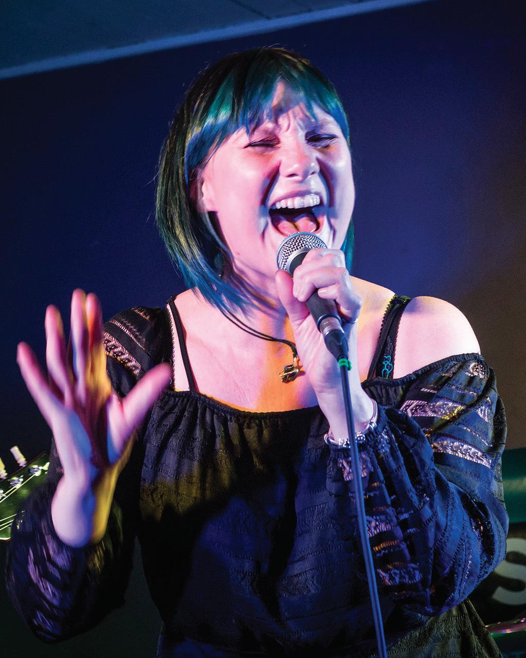 Kaz, a singer songwriter, is all about fun and professionalism, with her aim of giving the audience a musical experience to remember. This is evident from the moment when the band enters the stage, each member wearing something red (since it is Kaz’s favourite colour) and all wearing different types of hats.This talented band from Belfast, Northern Ireland comprises: Kaz Hawkins (vocal/ gutar), (Dr) Nick McConkey (lead guitar), Michael (Funky Bear),