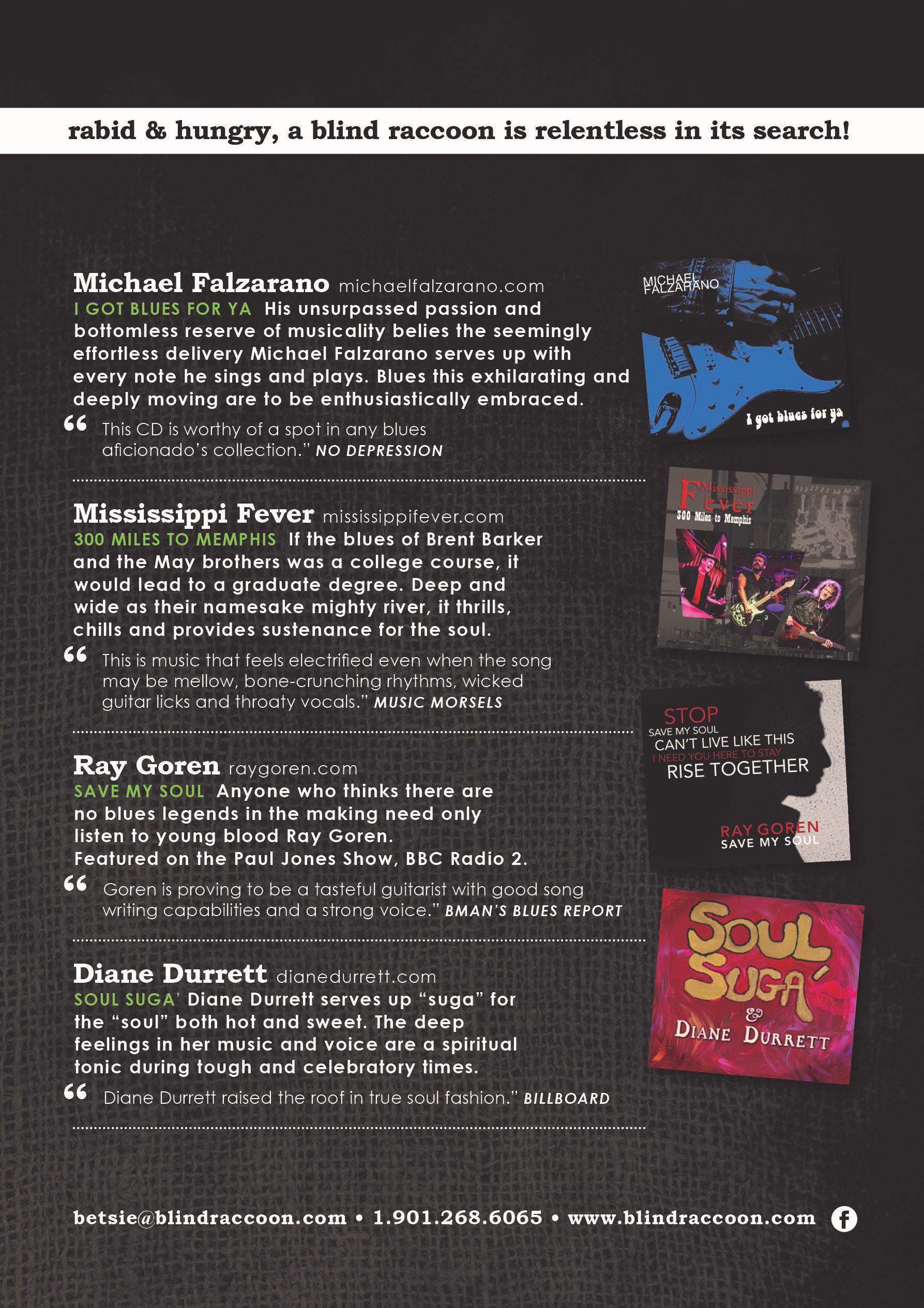 If that ain’t enough there’s the review section (don’t forget lots more reviews on our web site that we can’t fit in the pages) plus the Festival and gigs for you not forgetting Blue Bloods… and of course the results of the BM Writers’ Poll 2015. Now where oh where can you get so much for the cover price?! Go make yourselves a cuppa or take a top off a bottle and settle down for a good Blues reading…