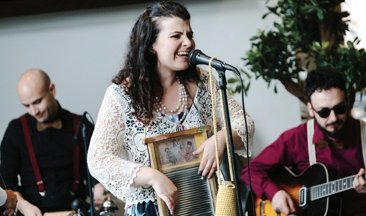 sky” Goin’ Back South featured slow sax and surf-guitar, while Good Luck Charm saw Wilkes on red electric bass for a dip back into ’50 girl-group double hand-clap accompanied swing.