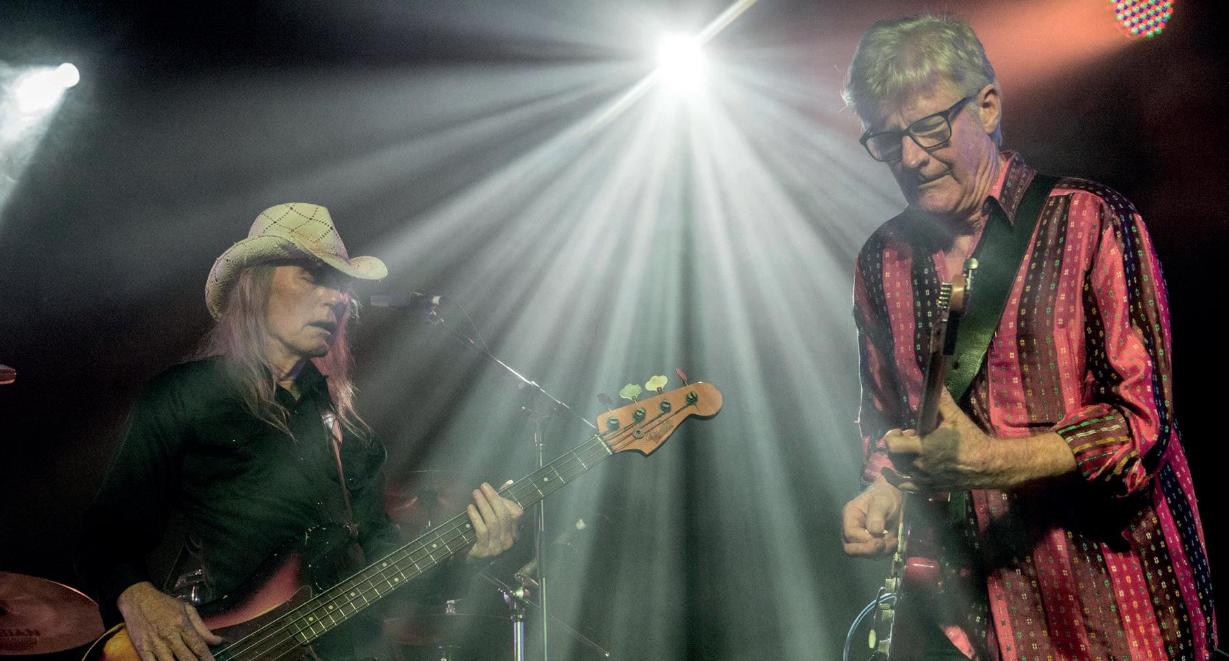 first set featured many crowd pleasers from the band’s back catalogue including a hard rocking Somewhere Down The Line and a swinging Janine. Highlight of this set for me was the stunning slow number Preservation Blues which opens with the line” Six o’clock in the morning my working day is done”. Harry Skinner is a master of slow blues and this number builds the intensity with a pulsing heartbeat bass, soulful vocals, blues wailing horns and spare guitar as it reaches a stunning climax. The second set was devoted largely to the new 25 Years album with the brass section and Ray Drury’s pumping organ featuring heavily on the rocking Change, Change, Change. A catchy piano and guitar riff opens Bees And Honey with Biff Smith’s drums driving things along and then barrelhouse piano and honking horns light up the rollicking She Ain’t Back Yet. Harry has some fun blowing harp on the exhilarating Roller Coastin’ Blues and duels with the horns on the funky Down Home Girl. We are treated to another slow blues with wonderful emotive vocals and classy guitar work on the classic You Don’t Miss Your Water. The evening closes with wonderful slide guitar and wailing horns on the barnstorming Elmore James style Mule and the inspired reworking of One Kind Favour which Harry describes as the band’s Hawkwind moment. The rapturous audience are then treated to an encore with the lovely jazzy Moondance. The Producers are playing many festivals and gigs this year and I would urge you to catch them live as this is my favourite lineup and they are on top form.