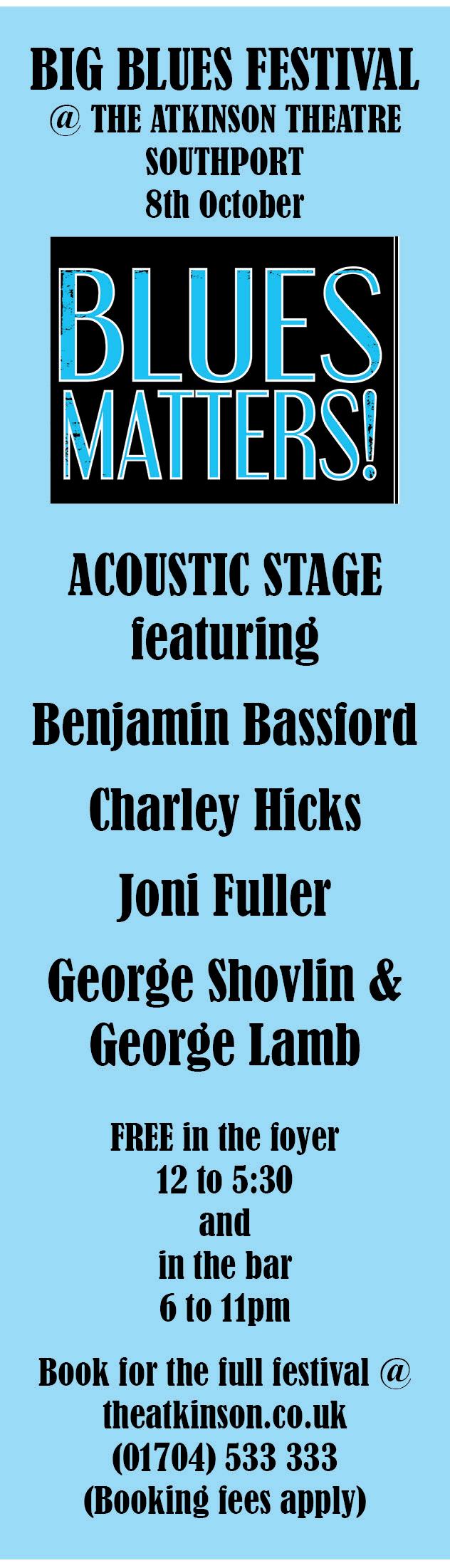 theatkinson.co.uk (01704) 533 333 (Booking fees apply) : TheAtkinson : @AtkinsonThe The Atkinson Lord Street Southport PR8 1DB BOOK NOW theatkinson.co.uk –01704 533333 Big blues festival — Fri 7 — Sat 8 october
