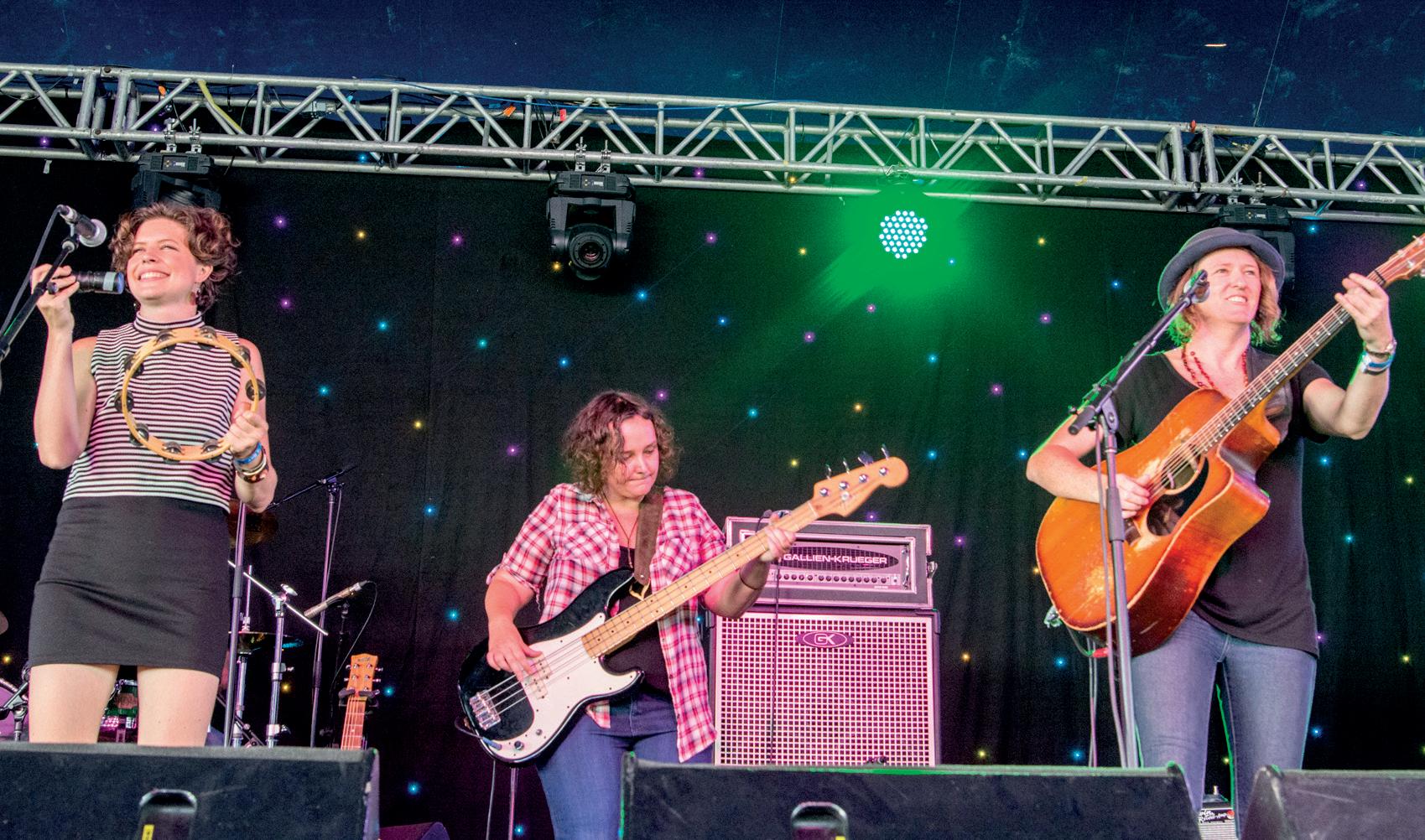A backing trio of artistes in their own rights added instrumental dexterity and vocal acrobatics to the songs. The ‘Ladies Association’ are Paula Henderson on basement baritone sax and sunglasses, Kendra Kilkuskie behind the Ludwigs and much more, and Jessica Lee Wilkes who plucked steady upright bass while harmonising.