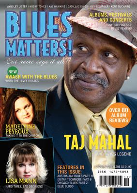 It is time to get ready for the first main Blues Fest of the year in sunny Skegness at the Butlins resort. So we hope to see many of you there to enjoy all the stages and of course the Blues Matters stage in Jaks. This issue brings you World and UK radio Blues charts and one of the best mail order charts anywhere plus a bunch of great interviews of terrific diversity including Madeleine Peyroux, Taj Mahal, Aynsley Lister, Kent DuChaine, Cadillac Kings and more as well as a super set of features where we begin a new set Awash With The Blues based on and around the artists and life of Baton Rouge as you would expect AND of course the best set of Blues CD reviews you can find so dig in and stay warm with Blues Matters! Because our name does say it all!