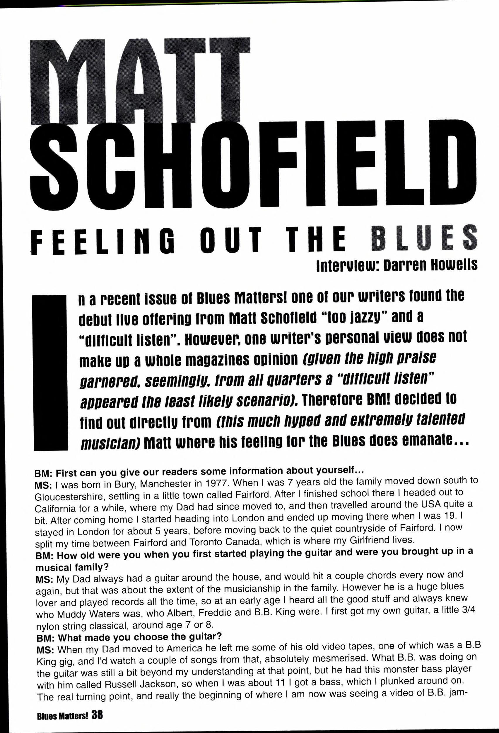 Kyla and Matt Schofield are our cover star this issue. Plus interviews with Jimi Hocking, Cream, The Basement, Hubert Sumlin and Robin Trower.