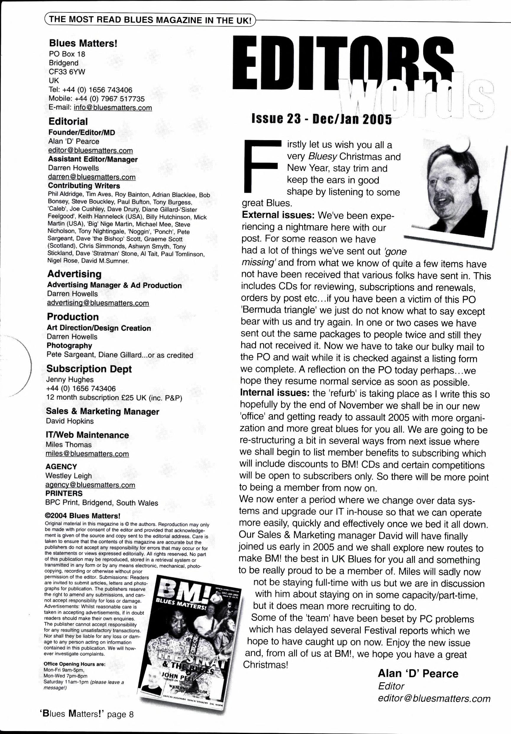 John Peel, Saiichi Suigiyama, Shack Shaker are our cover stars this issue. Plus interviews with Jesse Cahn, Zac Harmon.