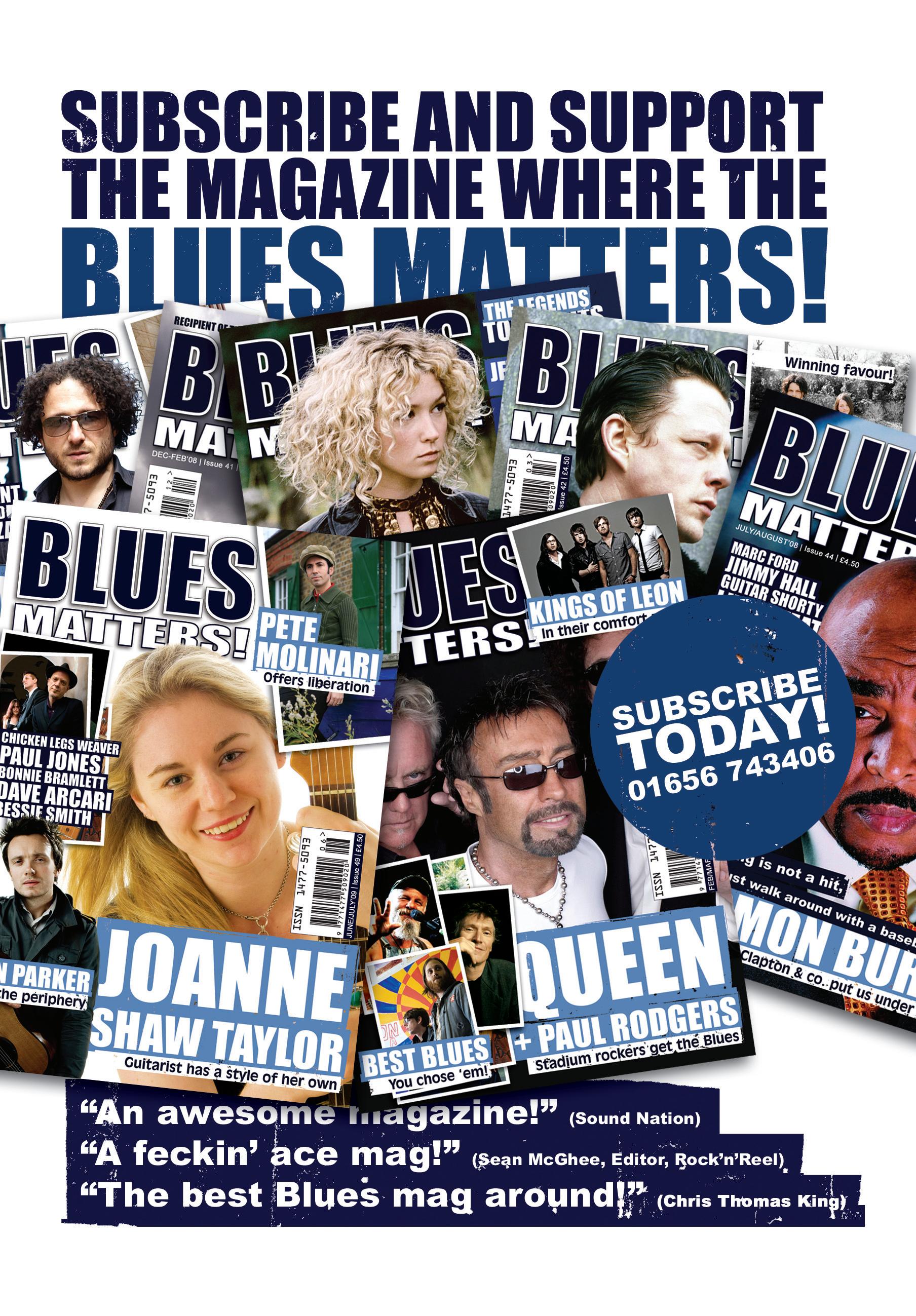 Having been a keen reader of your magazine, Blues Matters!, for the last few years, and now a dedicated subscriber, I find it refreshing to find a Blues magazine with its eyes firmly fixed on the present and future of the Blues, rather than looking to the heroes of the past. With regards to bringing the Blues to younger audiences, I feel, as many gigs still fall in the pub circuit, it excludes under 18s from attending, yet I’m a fan who first heard the Blues in the mid-60s - as a young boy. Bands like The Rolling Stones, Yardbirds and Fleetwood Mac had the opportunity to release singles that got into the charts. Today, with downloads, and Blues music being seen still as album based, it seems very difficult for established artists or the newer, young guitar slingers to get their music out to a wider audience, so constant gigging and festival spots still seem to be the only way to gain exposure. It is, therefore, vital that a fantastic, dedicated magazine like Blues Matters! must be easily found at major news and magazine outlets such as WH Smiths, and to be found in the last major high street music outlet, HMV, and have equal shelf space alongside various rock, country, jazz, and even classic and opera music magazines. Then the Blues would have a bright future – just as I hope for many of its young players, who must strive to bring new life, textures and innovation to one of popular music’s most enduring forms. In its truest forms, Blues is a relevant form. Whilst some parts of humanity suffer poverty, oppression, starvation and a need to improve their standard of living and expectations, Blues can have a voice for hope and change for people without a voice – and not just another part of the