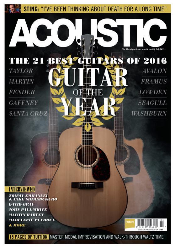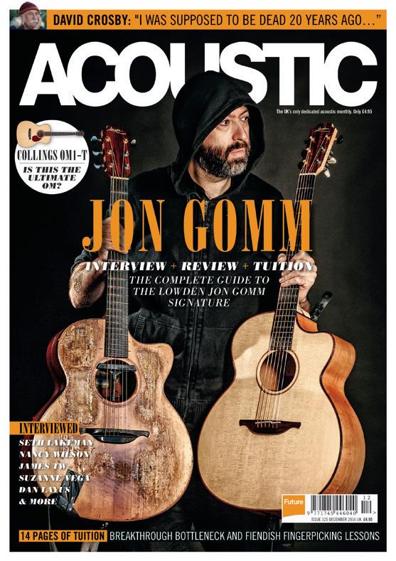 SUBSCRIBE TO TODAY FOR JUST £5! 3 ISSUES FORJUST £5! TERMS & CONDITIONS New and UK customers via Direct Debit only - once your trial run is completed you will be placed on a quarterly term subscription at £11 thereafter. Prices and savings quoted are compared to buying full-priced UK print issues. You will receive 13 issues in a year. You can write to us or call us to cancel your subscription within 14 days of purchase. UK calls will cost the same as other standard fixed line numbers (starting 01 or 02) and are included as part of any inclusive or free minutes allowances (if offered by your phone tariff). Your subscription is for the minimum term specified and will expire at the end of the current term. Payment is non-refundable after the 14 day cancellation period unless exceptional circumstances apply. Your statutory rights are not affected. Prices correct at time of print and subject to change. For full terms and conditions please visit myfavm.ag/magterms. ExclUSIvE InTERvIEwS GEaR REvIEwS TOp TUITIOn TacklInG SlIdE Richard gives us a crash course in slide playing A tunings, G, D and C. For this article narrow the perspective to open Tuning and include small batch of slide moves to attempt and some fingerings for both the left and right hands while fretting and fingerpicking. First the tuning: tune your low down RIC ARD wIT fingerstyle guitarist EChn UE Sk ll l: suitable for all x mpl En C p ITIOn – a a a vibrato with the slide along with variation on the number of strings covered with the slide. In beat one, only cover strings one and two with the slide while guiding behind with your index finger. As you descend avoid touching string three with the slide as you playing the open strings on beat four apply Bar three: This bar has an interesting reversal as you will attempt rapid descending grace notes move with the slide. Begin by covering all six strings with the slide on fret £2775 aterloo -K RE IEw Waterloo WL-K Meet our ‘Guitar of the Year’: a throwback 1930s model that’s imbued with Bill Collings’ exacting 2016 standards. Stephen Bennett checks out this timeless beauty that combines outstanding tone separates this model from the rest of the range and what makes it, perhaps, the best Like the company’s more recognisable Kalamazoo series, the original ‘Kel Kroydon’ guitars were short-lived, Depressionreal sense just how alive and responsive this guitar even so early in its musical life. There’s nothing on the WL-K that isn’t essential to its absolute fundamental purpose; producing ‘that’ tone. There’s no purfling, no scratchplate and only the most minimal, The town of Waterloo changed its name Austin in the early 1840s. Fittingly, it became the music capital of Texas. OK, that’s the history lesson (not quite) out of the way. Time –instruments? Moreover, with regard to the whole Waterloo concept, why did many cheap, Depression-era catalogue guitars, built like cabbage-crates, sound so fabulous? While the answer to that one might be totally subjective, there’s no doubting that the bid to get guitar into every household America, the ‘name’ companies didn’t exactly push the boat out, quality-wise, with the materials used or time spent getting the instruments from forest to living room. Hence, Bill Collings’ love of cheap guitars have changed?) you played what you could afford, whether your name was Leadbelly, Jimmie Rodgers or Woody Guthrie. Yet those cheap guitars, in those hands, had an unforgettable voice and Bill Collings wanted bring back. So… with WL standing for Guitar year of the TER IEw rod igo ab iela Mexican guitar duo Rodrigo y Gabriela smash the templates of metal and classical guitar, reconfiguring them into a fiery, hybrid sound. Acoustic sat down with the duo as they reflected on their past F videos illustrating their enormously emotive guitar playing racked up. By the time they returned to reside in their homeland in 2007, they were established Rodrigo “We just did tour 23 countries in just two months but we purposely chose countries we’d never been before and was really good. We went places like rgentina, hile, Lithuania and other countries but in some places they wrote in the music press that we play ‘flamenco!’“ through,” abriela explains, “and we decided that our chances getting record deal were non-existent after chasing one for years. We picked Dublin as we knew someone living there and figured would be new start moving so far away. We didn’t speak we developed technique by accident. But complement each other.” Reflecting, what does Rodrigo think has been his biggest challenge over the last 20 years he’s played with R O d R IGO G ab R IE la y ThE UK’S NO.1 MagazINE FOR aCOUSTIC MUSIC, FEaTURINg ExClUSIvE INTERvIEwS wITh ThE bIggEST aRTISTS aS wEll aS ExPERT COlUMNS FROM SOME OF ThE MOST RESPECTED aCOUSTIC MUSICIaNS. SUBSCRIBE TODAY… www.myfavouritemagazines.co.uk/ACm311 Or call 0344 848 2852 and quote ACm311