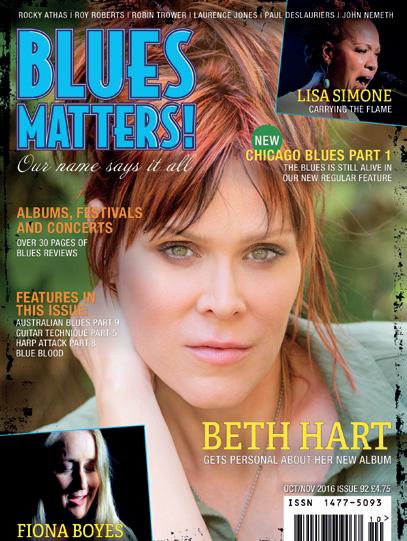Readers are invited to submit articles, letters and photographs for publication. The publishers reserve the right to amend any submissions and cannot accept responsibility for loss or damage. Please note: Once submitted material becomes the intellectual property of Blues Matters and can only later be withdrawn from publication at the expediency of Blues Matters.