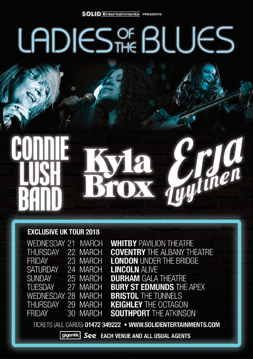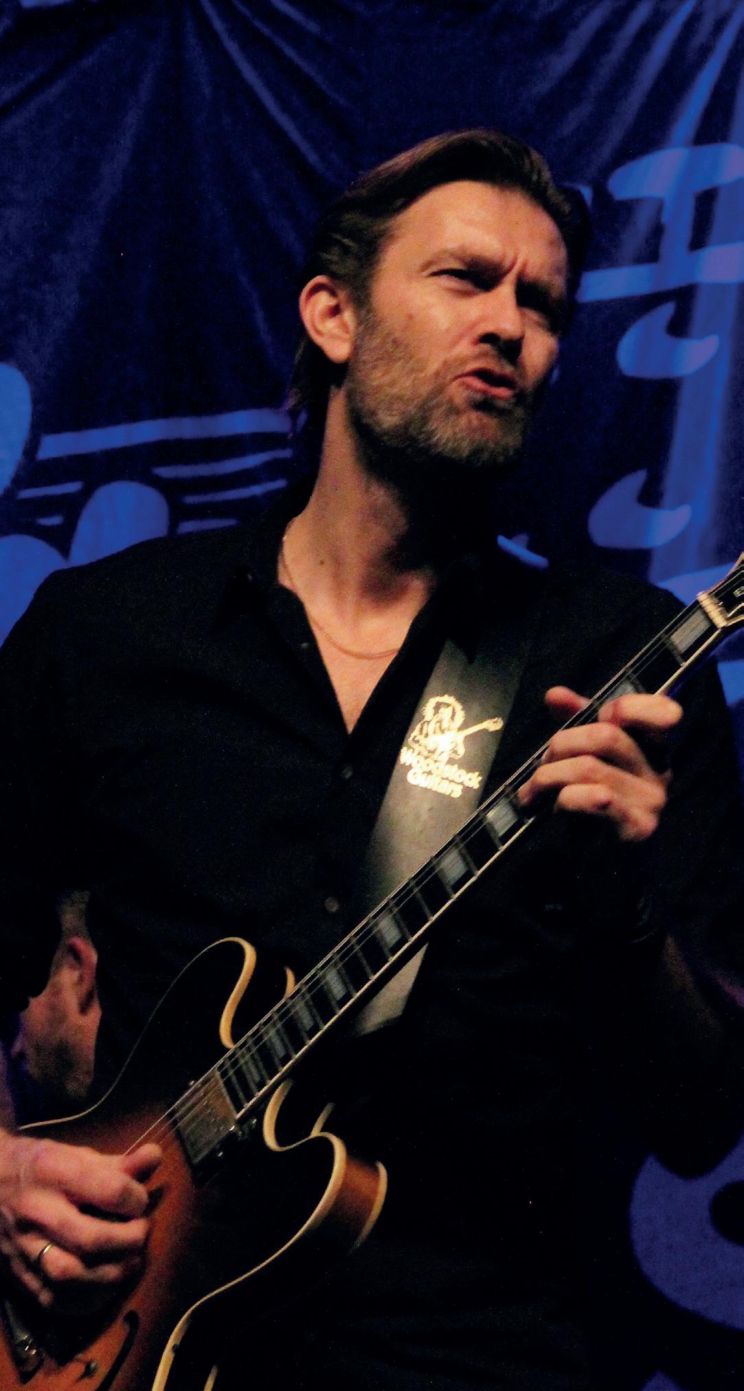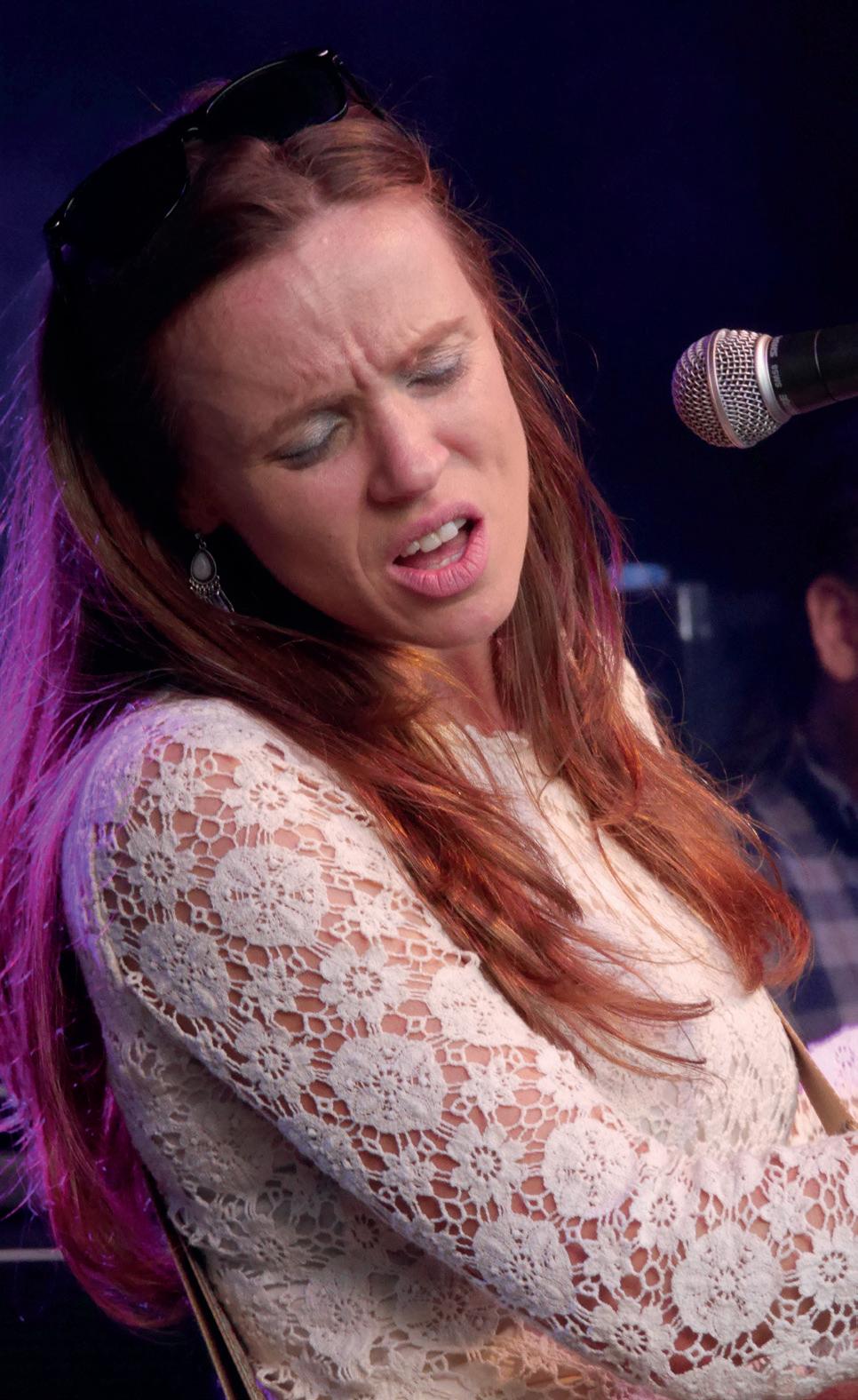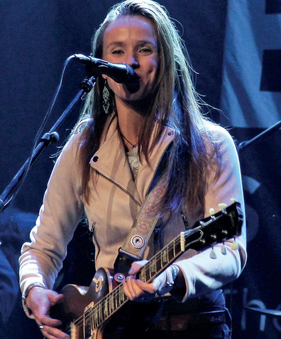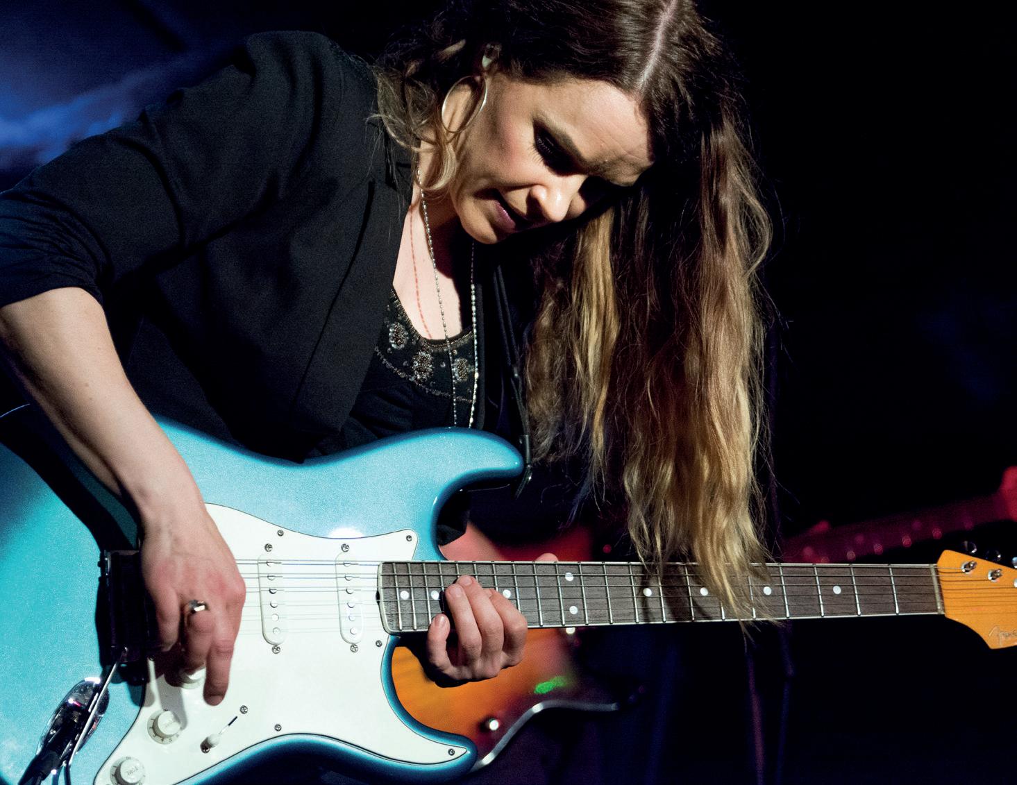 from which Erja could fl y with her vocals and guitar. Erja, the fl ying Finn, with her sparkling Sapphire blue guitar and glass slide creating a tumultuous celebration of the blues, a theme she returned to throughout the evening. Numbers from Stolen Hearts, including the title track that was a highlight with lots of joyous interaction and community singing for the chorus. One of the many highlights of the evening was Black Ocean, with its deep driving blues textures, the heavy riffs and rhythms were definitely dark and dangerous. The slow blues was a thing of beauty as Slowly Burning curled around the arches. Then Rocking Chair, the interaction between guitar and bass was immense, followed by an instrumental solo from Erja as she showcased the individual