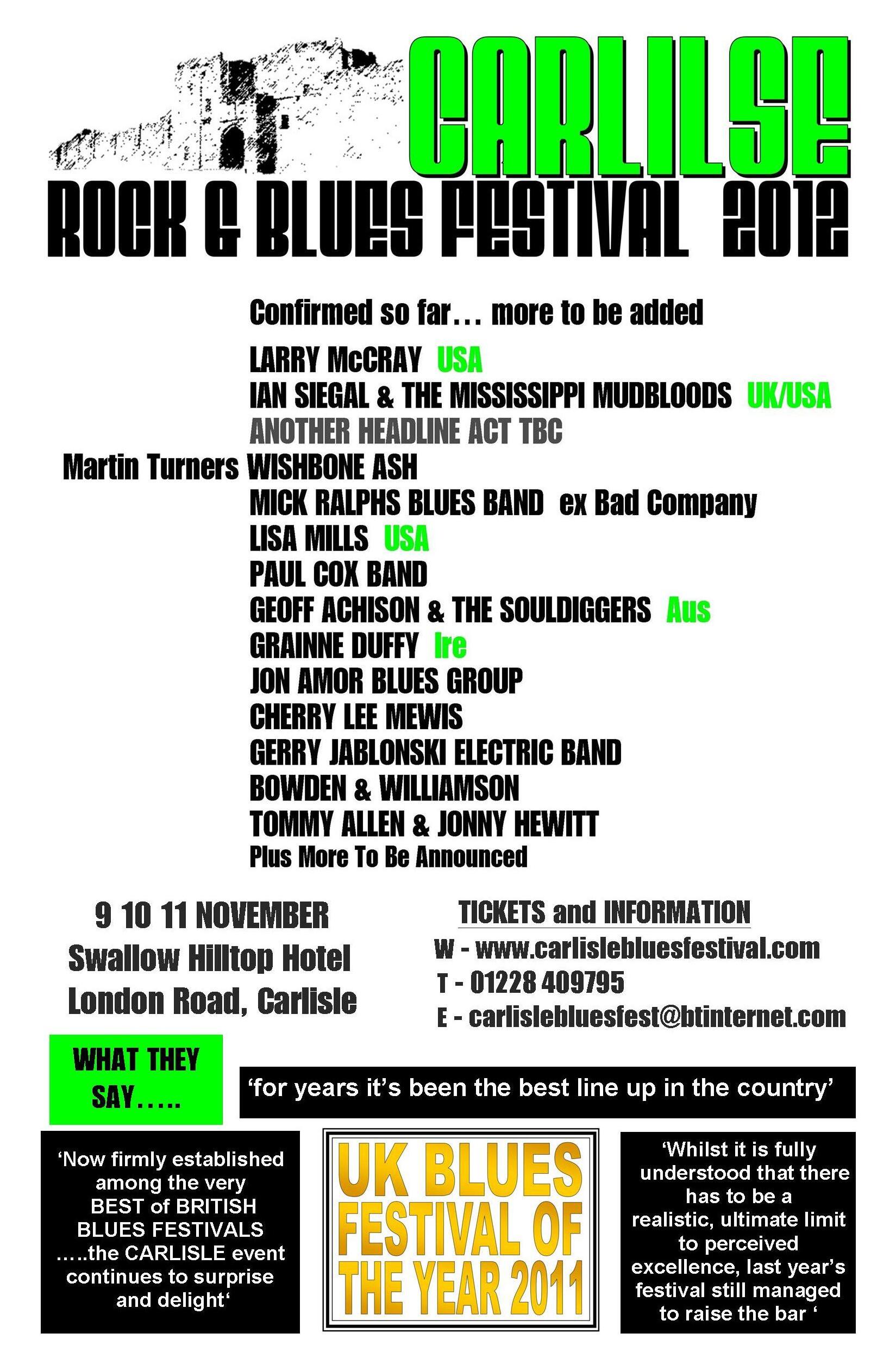 Scarborough Mini Festival, Bowness Festival, Blues at the Pier Cromer, Mainsforth Blues Festival.