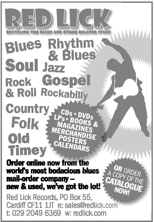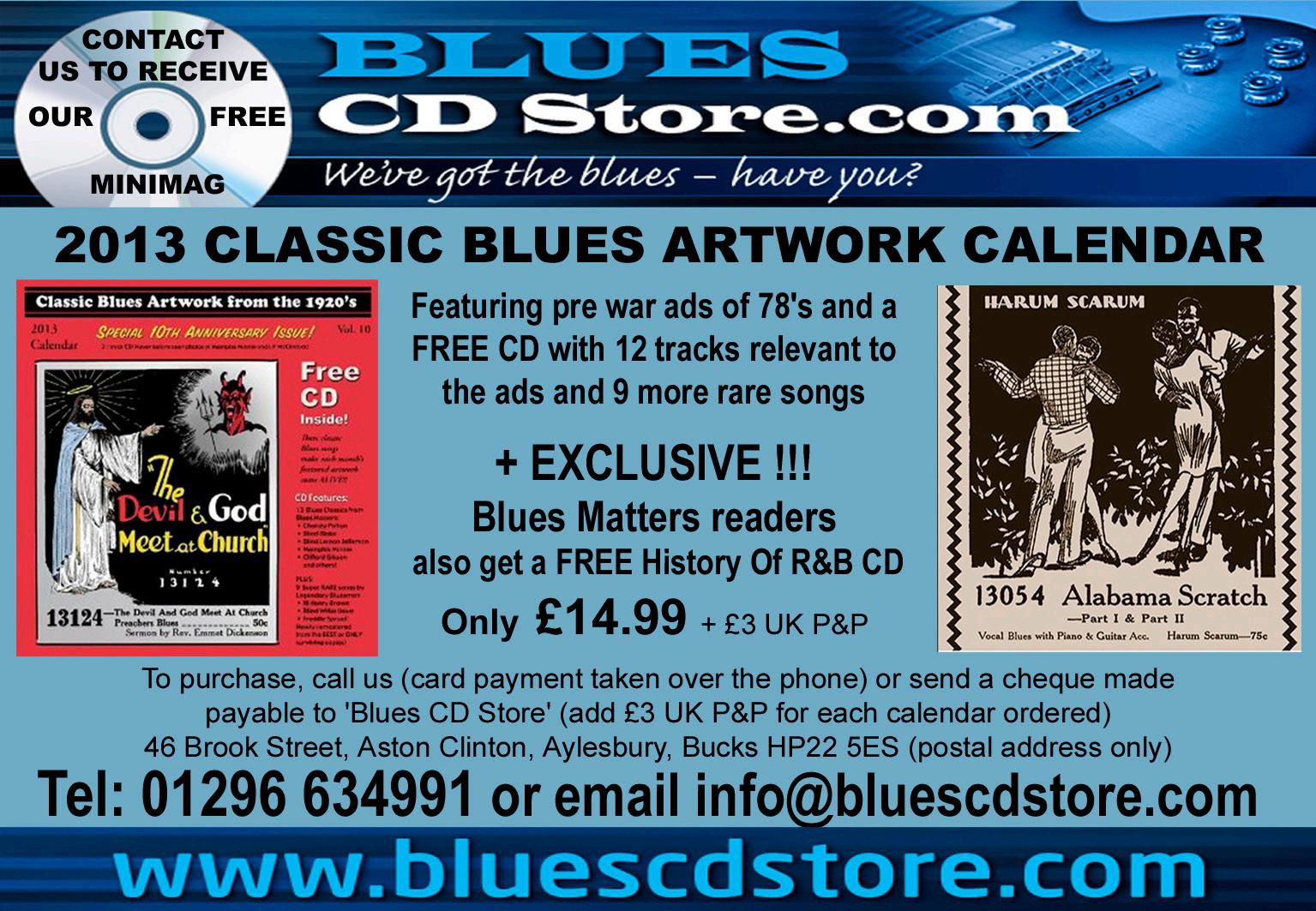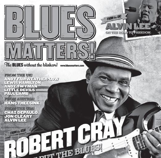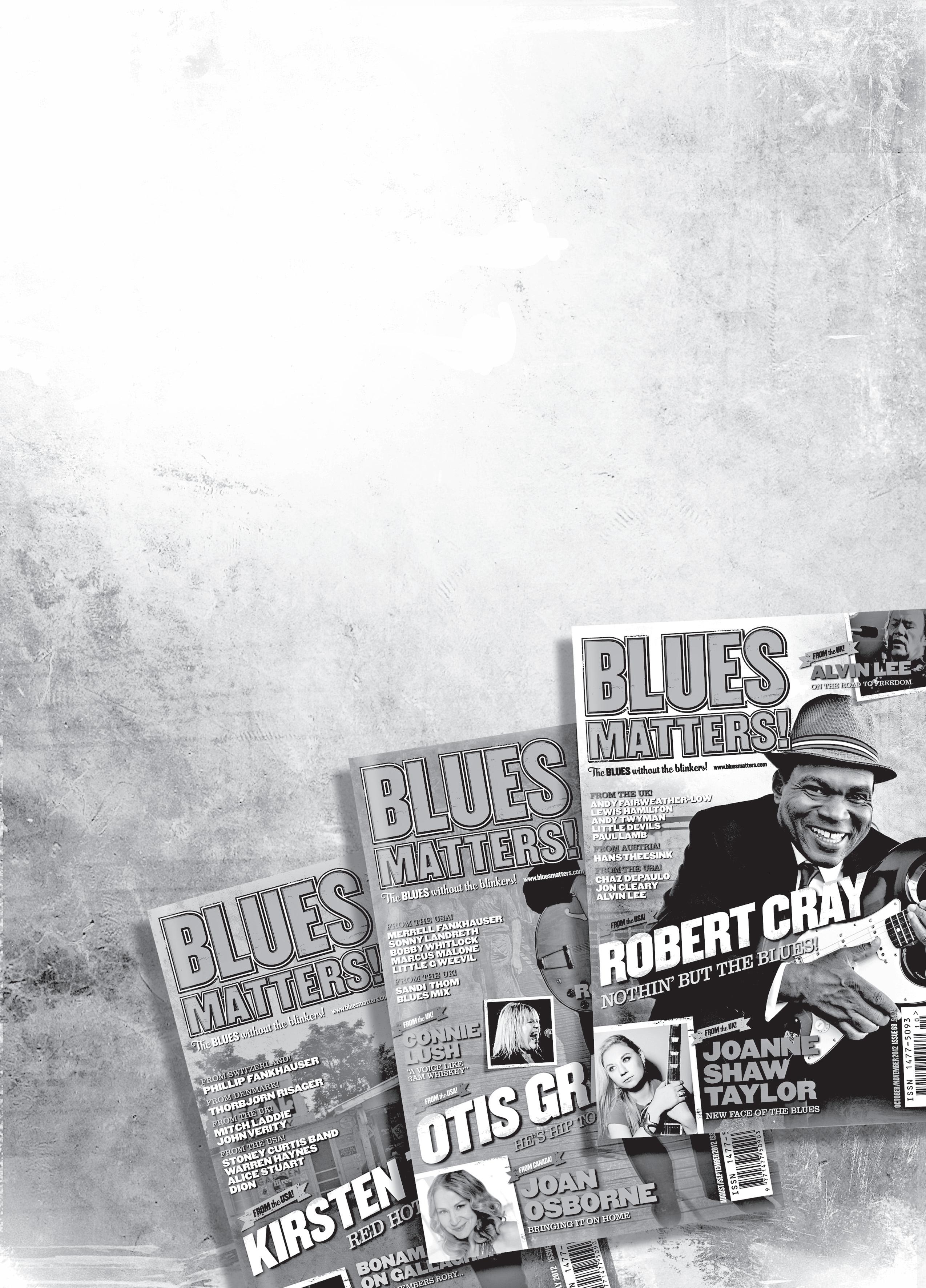 © 2012 Blues Matters! Original material in this magazine is © the authors. Reproduction may only be made with prior consent of the Editor and provided that acknowledgement is given of the source and copy is sent to the editorial address. Care is taken to ensure that the contents of this magazine are accurate but the publishers do not accept any responsibility for errors that may occur or views expressed editorially. All rights reserved. No parts of this magazine may be reproduced, stored in a retrieval system or transmitted in any form or by any means electronic, mechanical, photocopying recording or otherwise without prior permission of the editor. Submissions: Readers are invited to submit articles, letters and photographs for publication. The publishers reserve the right to amend any submissions and cannot accept responsibility for loss or damage. Please note: Once submitted material becomes the intellectual property of Blues Matters and can only later be withdrawn from publication at the expediency of Blues Matters. Advertisements: Whilst responsible care is taken in accepting advertisements if in doubt readers should make their own enquiries. The publisher cannot accept any responsibility for any resulting unsatisfactory transactions, nor shall they be liable for any loss or damage to any person acting on information contained in this publication. We will however investigate complaints.