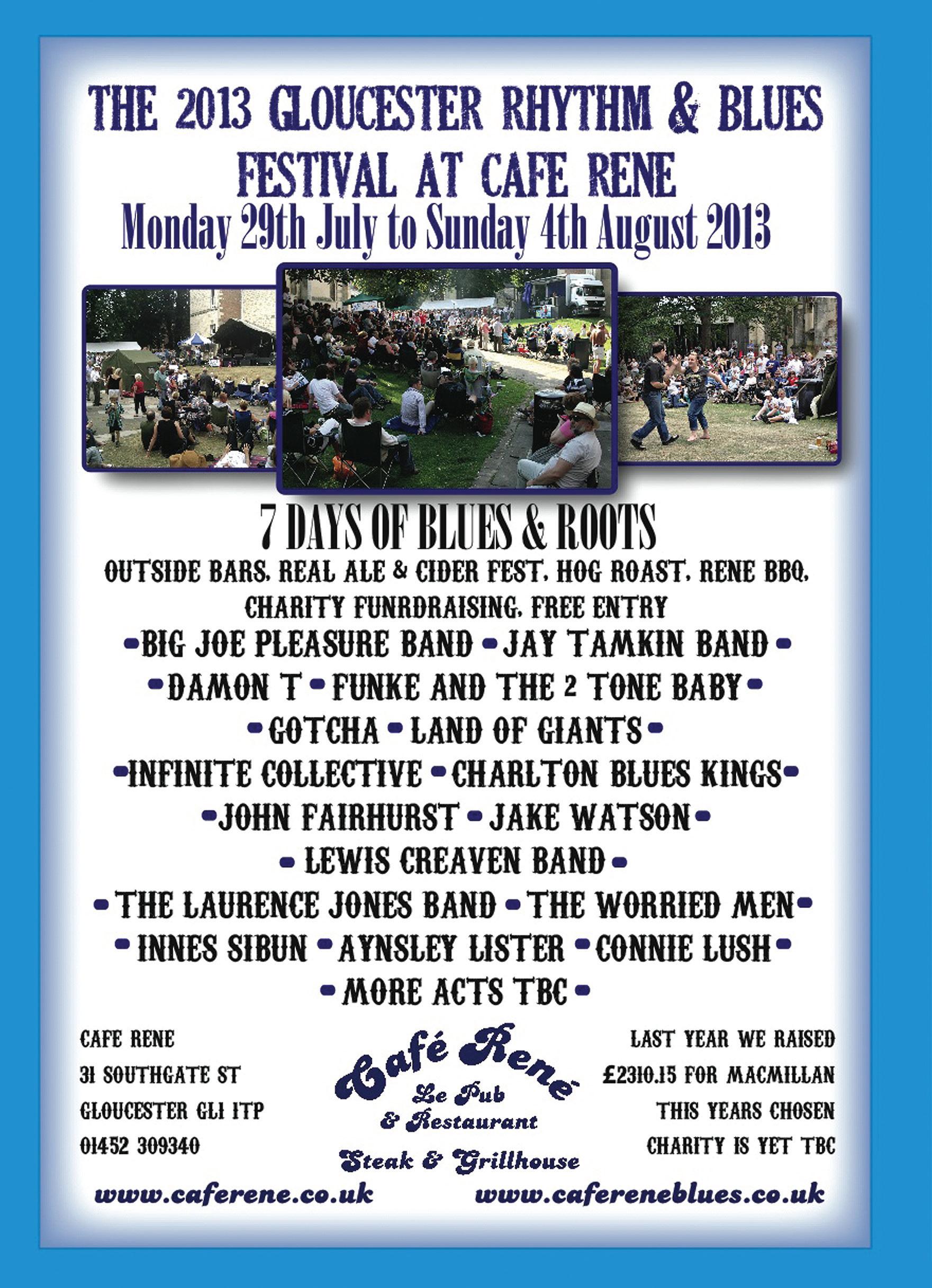 Congratulations must go to everybody involved who worked so hard to make the EBC such an excellent two day feast of great blues from Europe. Next year it all takes place in Riga, Latvia so put the dates – April 11th & 12th - in your diary and make sure you book time off for 2014’s blues feast that is the EBC. And visit the EBU website – www. europeanbluesunion.com – to find out more about the Union and how you can support their efforts, and blues in the UK, by joining! ashwyn smyth