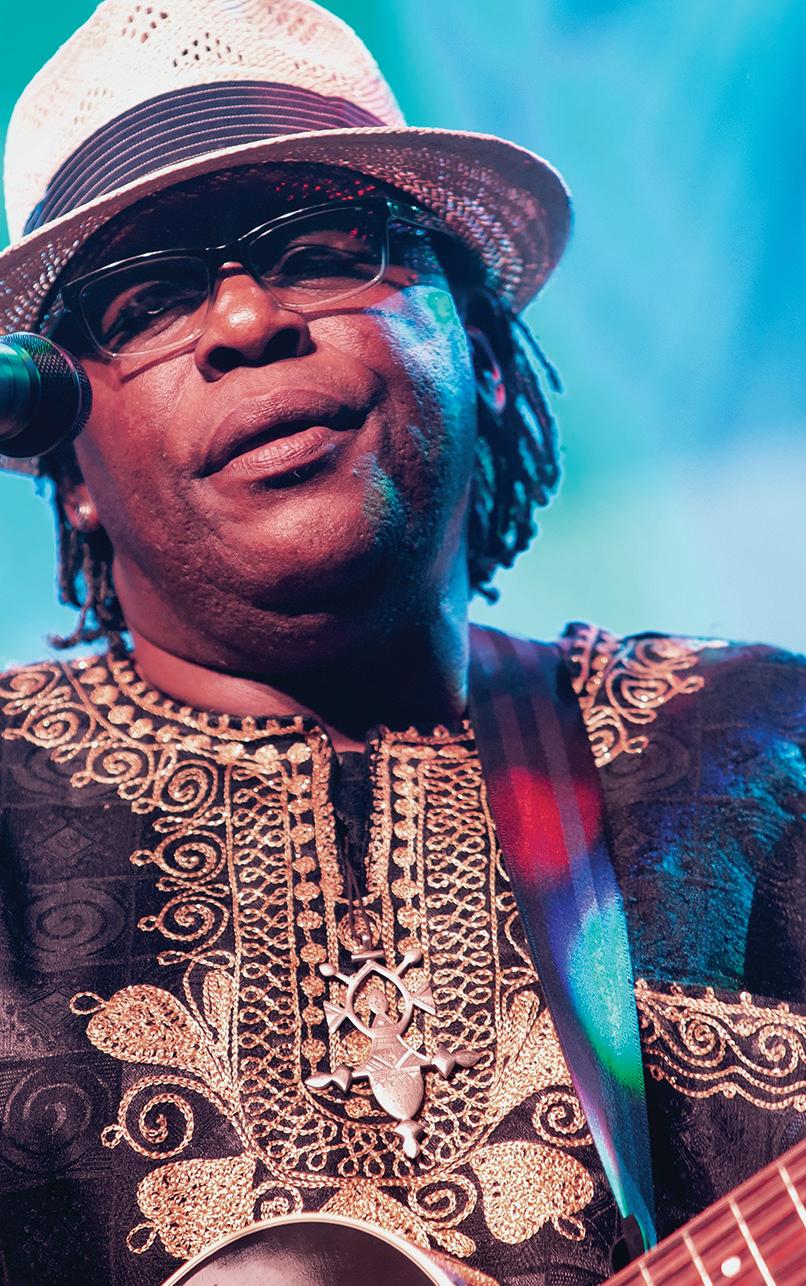 “Blues is not about fallin down. It’s ‘bout feelin better ‘bout yourself,” he’s singin and sayin, and he knows. He dropped out of sight some 12 years ago. Had to. “Couldn’t get out of bed. My hair’s fallin out,” he’s telling us. Turns out he’s got stage-four liver cancer – the final stage, where life expectancy well, ain’t promising. He’s out for a whole year. And then he’s blessed with a full recovery. “This is all my own hair,” he says, tugging on his dreads with a grateful smile. He tells us, “Let life flow. Let it go, and let it be.” He’s earned all of that, the hard way.